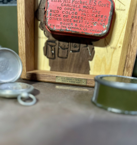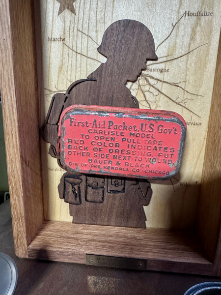 First Aid Packet U.S. Govt. im Holzdisplay - WW2 WK2 US ArmyeGun-ID: 20336163