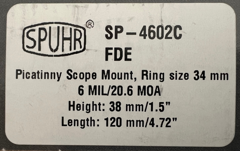 Jagdzubehör > Zieloptiken > Montagen ZF Montage Spuhr Ø34 H38mm 20,6MOA Blockmontage Gen3 FDE - TOP ZustandeGun-ID: 20336708