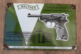 Emailleschild Walther Selbstlade Pistole P38 Kaliber 9mm Parabellum 30 x 20 cmeGun-ID: 20338471