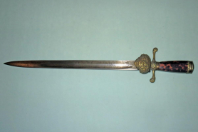 Alter Hirschfänger mit Messingmontur geätzter Klinge und SchildpattgriffeGun-ID: 20338856