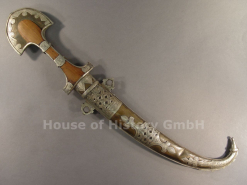 Marokkanischer Krummdolch um 1900, Messingscheide mit gravierten Neusilberbeschlägen, HolzgriffeGun-ID: 20339607 - Artikel-Nr des Verk.: 146155