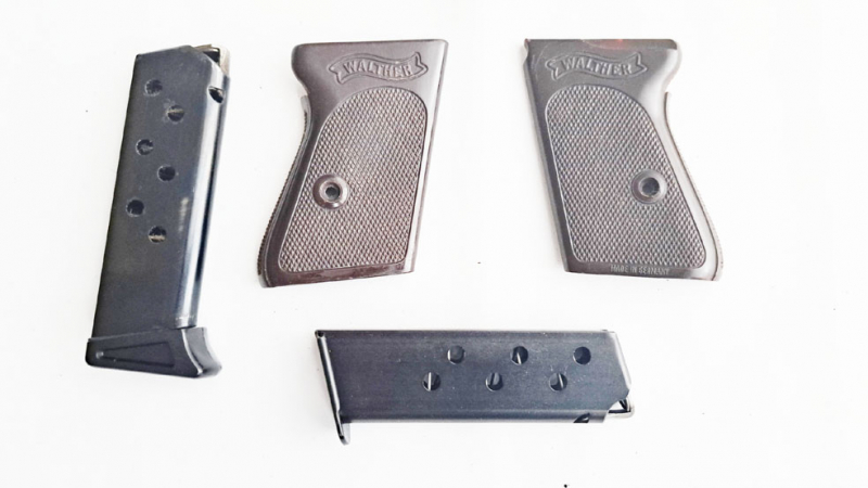 Grosskaliber Kurzwaffen > Gebrauchspistolen > Zubehör Zwei Magazine und Griffschalen für Walther PPkeGun-ID: 20339792 - Artikel-Nr des Verk.: 0000