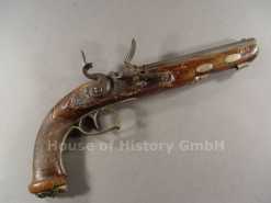 Steinschlosspistole um 1820, verzierte und gravierte Eisen und Neusilber Beschläge, schönes SchloßeGun-ID: 20343211 - Artikel-Nr des Verk.: 132294