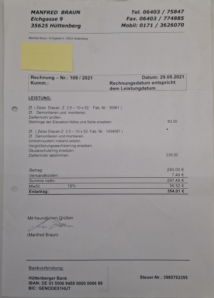 Zeiss Diavari Z 2,5-10x52 Absehen 11, überholt technisch besser als neueGun-ID: 20345454