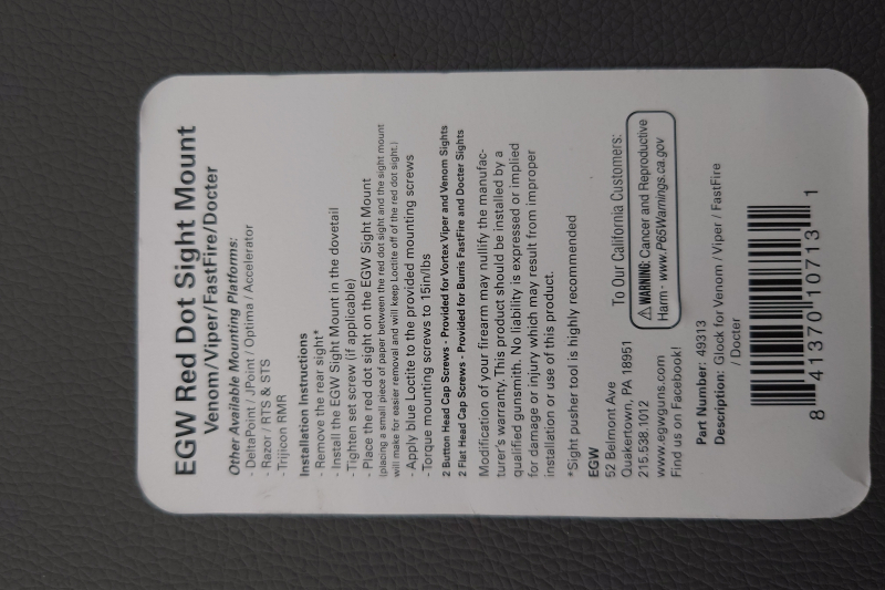 Grosskaliber Kurzwaffen > Gebrauchspistolen > Glock EGW Montage für ReddoteGun-ID: 20346251