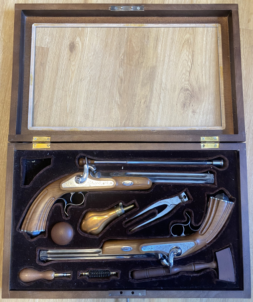Abschließbarer Duellpistolenkasten mit 2 Duellpistolen und Zubehör.eGun-ID: 20347399