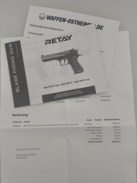 Retay Big Fifty Chrom 9mm P.A.K. – Desert Eagle Style Schreckschuss + OVP + ZubehöreGun-ID: 20349676