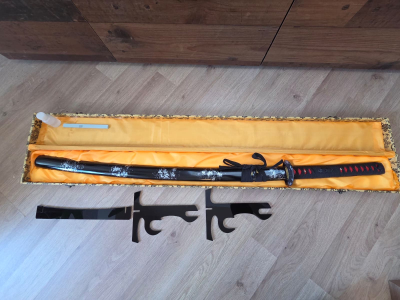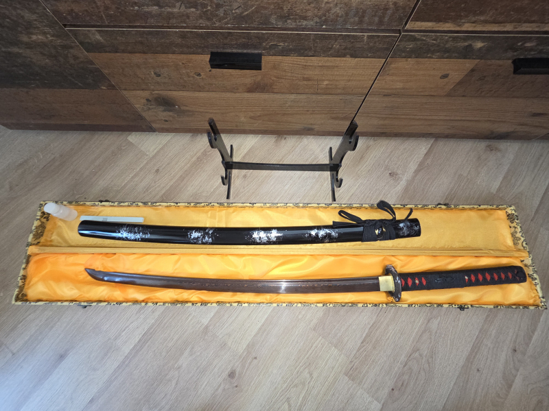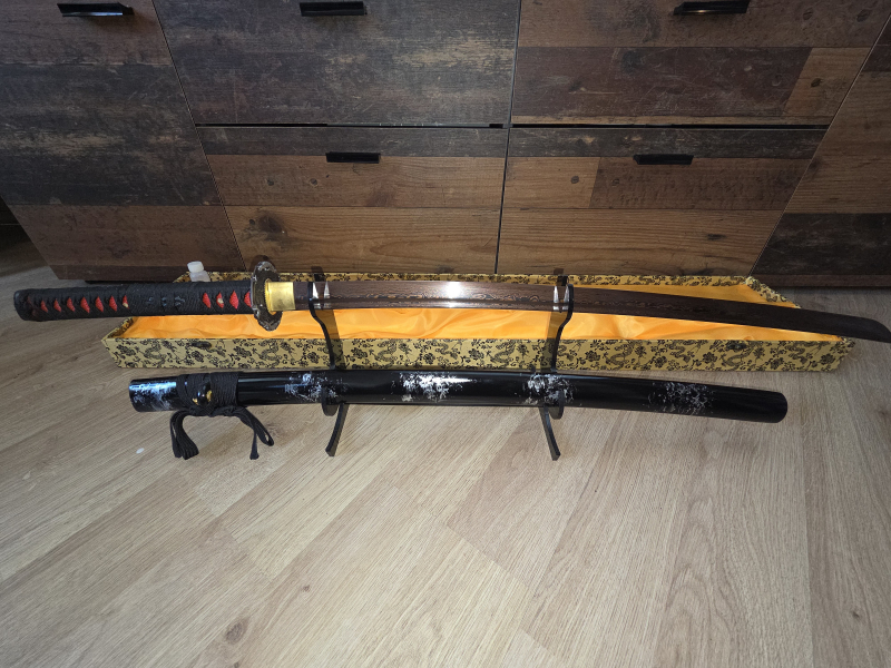 Literatur | Filme > Sammlerwaffen Handgeschmiedetes Katana (Rot-Damast) – Sammlerstück inkl. Box & StändereGun-ID: 20351330