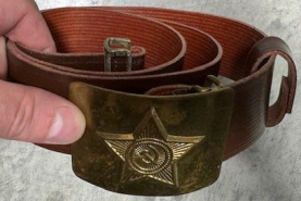 Original sowjetischer Militärgürtel – UdSSR – Kalter Krieg – Messing Koppelschloss – SurpluseGun-ID: 20351458