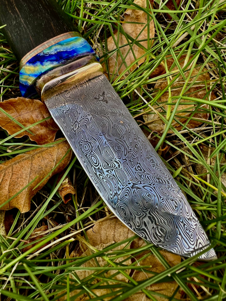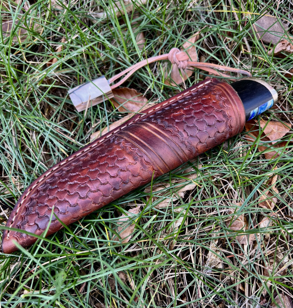 Outdoor Jagd Messer EDC Unikat Fossiler Griff LederscheideeGun-ID: 20351549