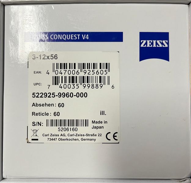 Zielfernrohr Zeiss, Conquest V4, 3-12x56, Leuchtabsehen 60eGun-ID: 20351619