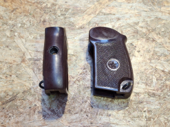 Makarov Griffschalen, original russisch, braunes Bakelit, Sowjetstern an beiden SeiteneGun-ID: 20352550
