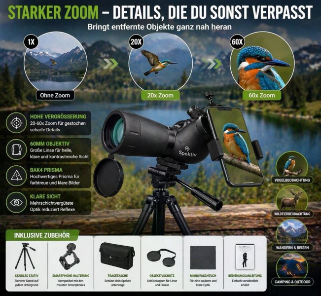 Sicherheitsbedarf > Sonstiges Spektiv 20-60x60 mit Stativ HD Monokular Fernrohr Vogelbetrachtung Teleskop NeueGun-ID: 20353516