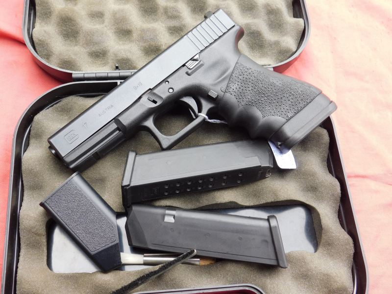 Glock 17 Gen. 3 Kal. 9 mm Luger komplett mit Reservemagazin, Jetfunnel, Leuchtvisier und KoffereGun-ID: 20354505 - Artikel-Nr des Verk.: KFX732