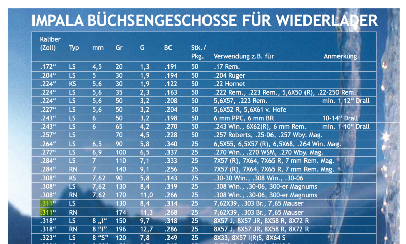 Geschosse Wiederlader .311 *bleifrei* ImpalaeGun-ID: 20355261