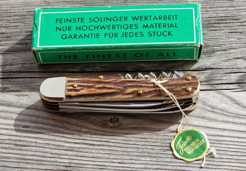 Anton Wingen Jagdmesser Hirschhorn 4tlg 1980's Neu mit OVPeGun-ID: 20355691