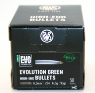 50 Stück NEUE RWS Geschosse - EVO-GREEN (bleifrei) 6,5mm .264 6.5MM 93gr 6g #2407446 TeilzerlegereGun-ID: 20358145 - Artikel-Nr des Verk.: 2407446
