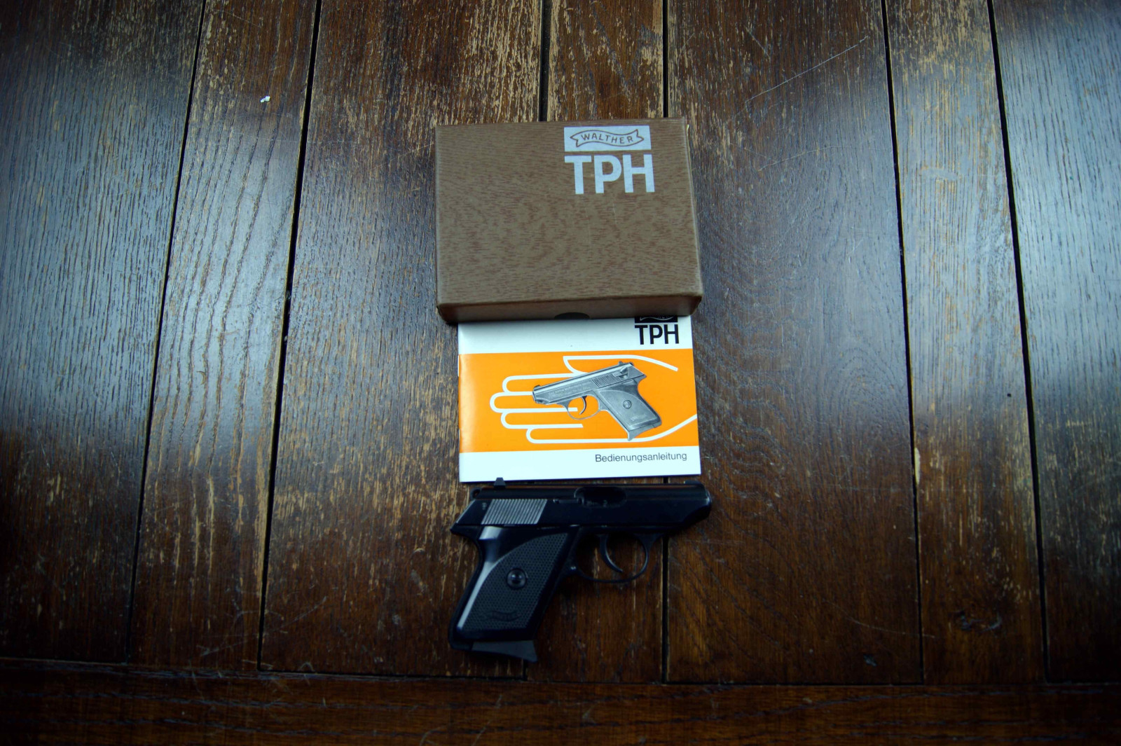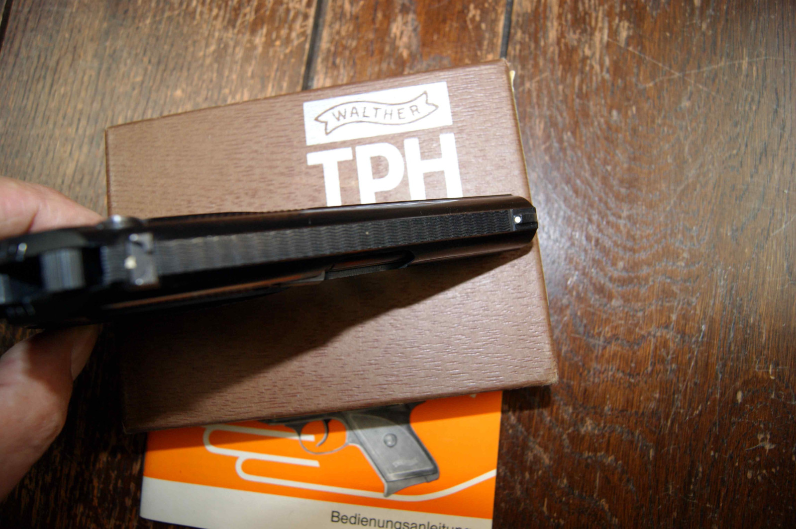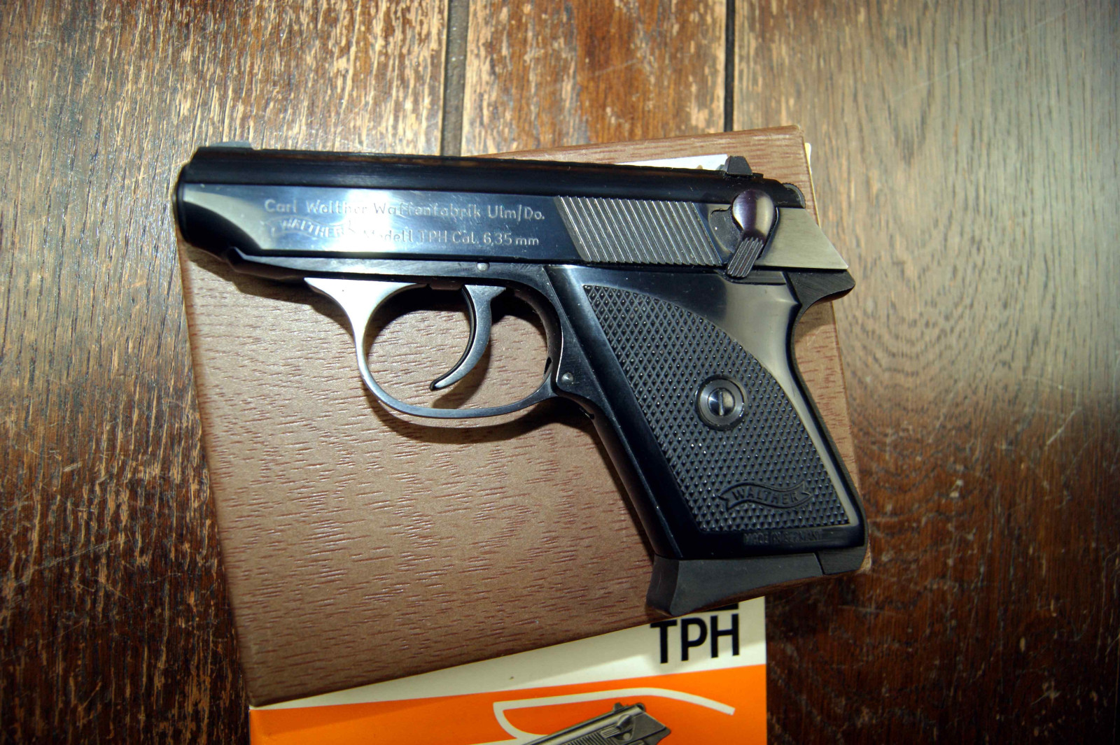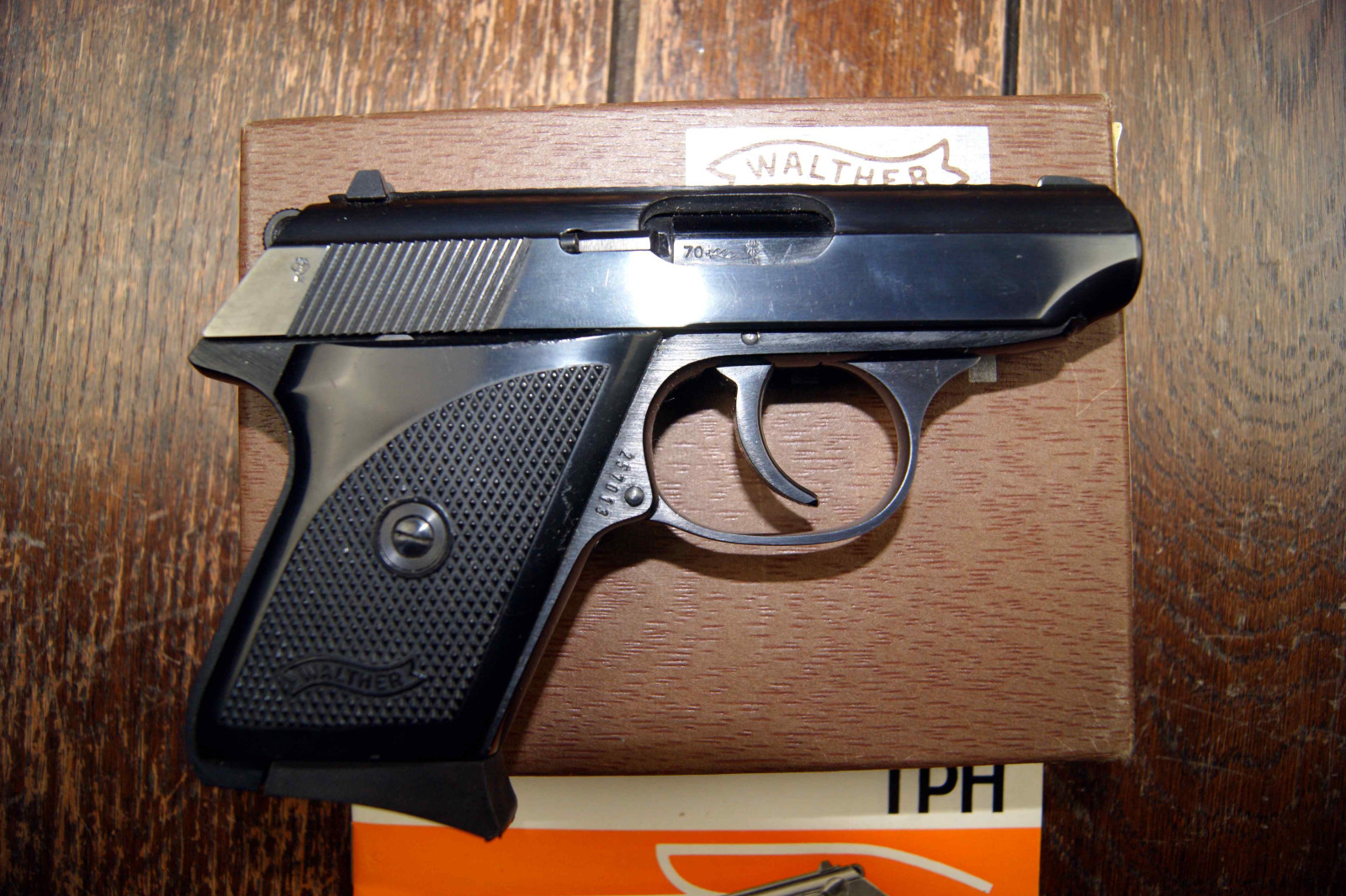 Walther TPH Kaliber 6,35mmBrowning, von der Originalschachtel ist Leider nur noch der Deckel vorhanden, mit Gegrauchsanleitung, die Pistole ist nahezu Neuwertig.