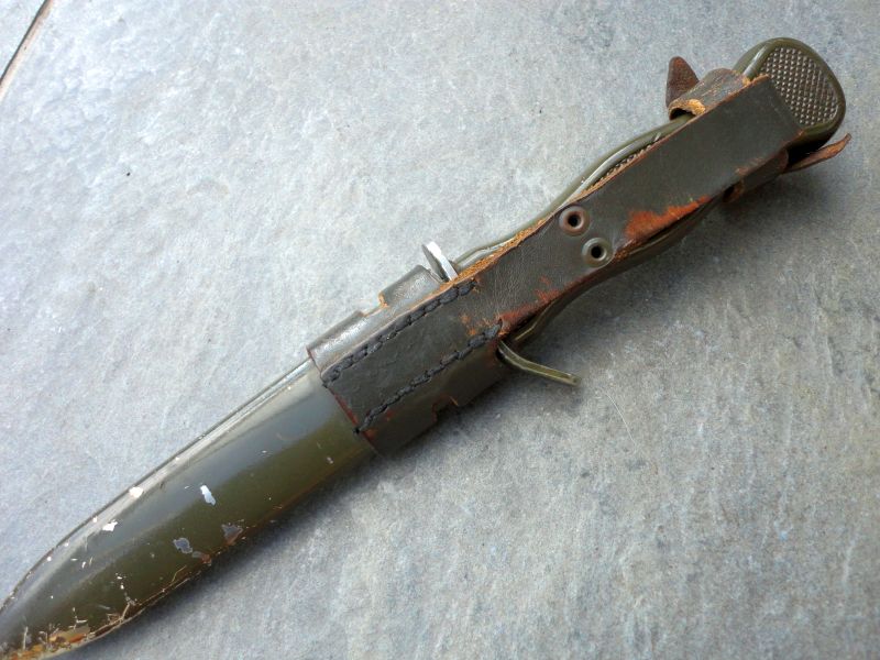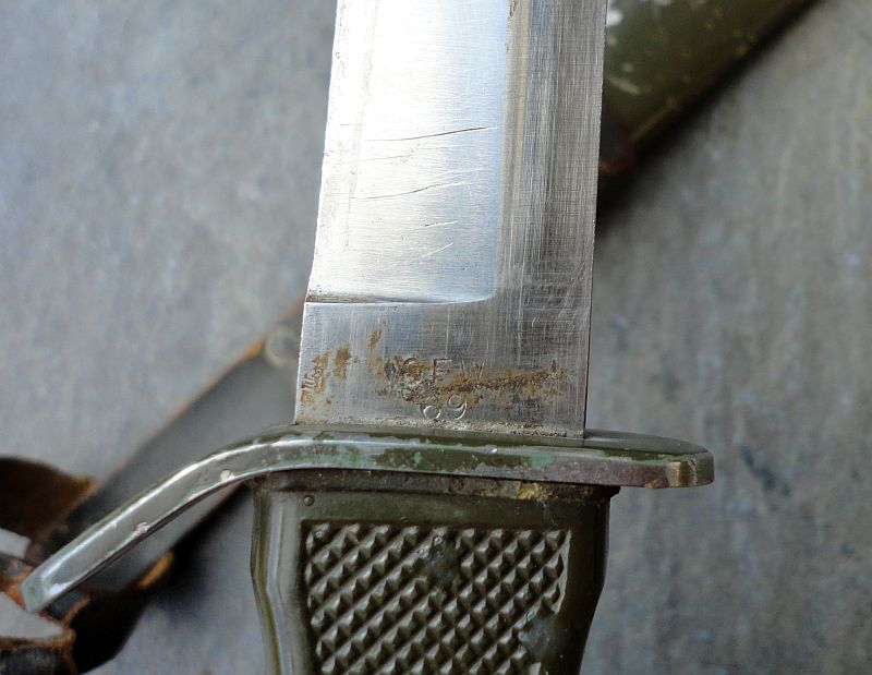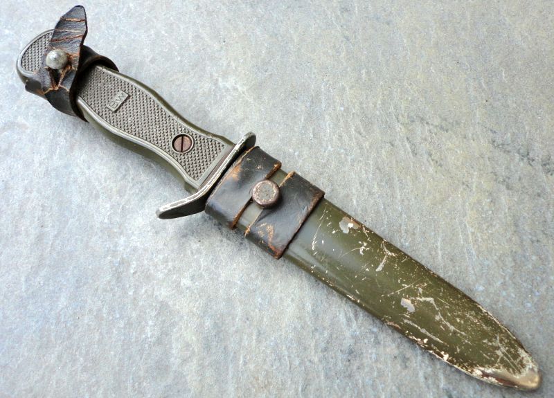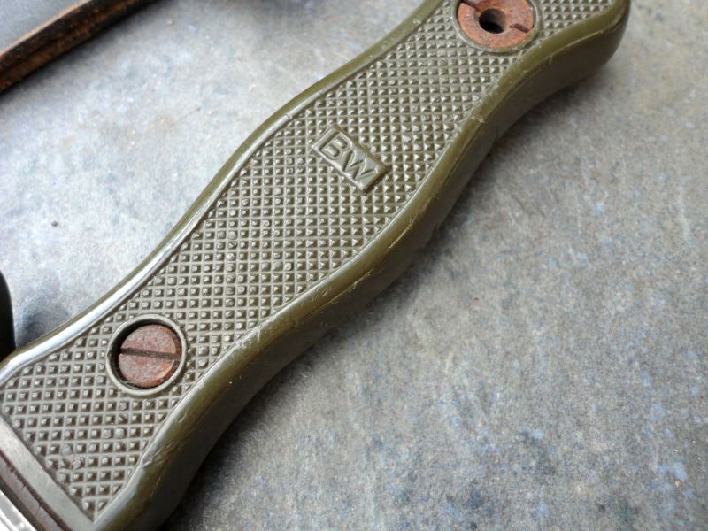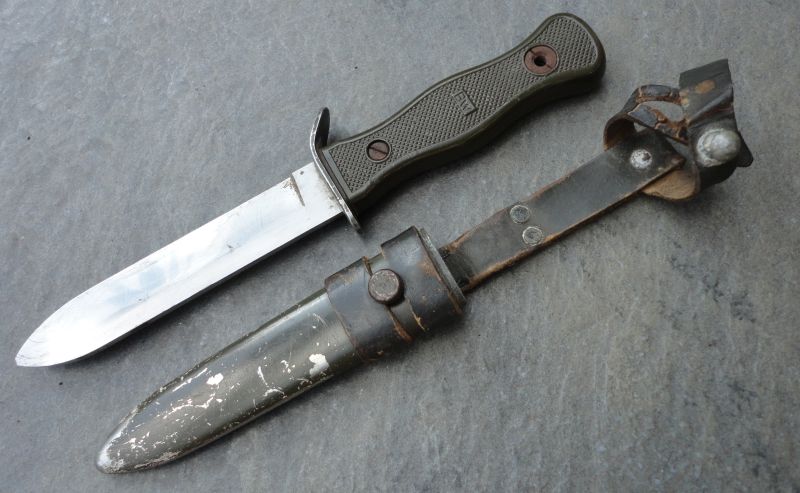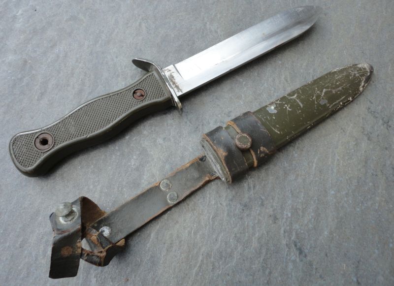 Geführtes Bundeswehr Kampfmesser mit Hersteller OFW (Otto Förster / Witzhelden) aus dem Jahr 1969 im Fundzustand.