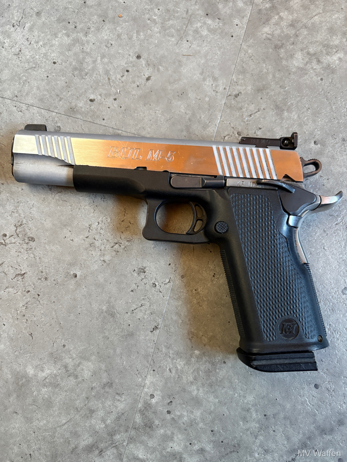 BUL M 5 in Kaliber 9mm. Hervorragende Sportpistole für höchste Präzision. Laut Vorbesitzer würde die Waffe anscheinend ab und zu doppeln, konnte ich beim Probeschiessen nicht provozieren, dennoch geht der Abzug extrem leicht. eigentlich viel zu leicht somit kann ich ein doppeln der Waffe nicht ausschliessen. Die Waffe sollte vor den ersten Versuchen definitiv überprüft werden und der Abzug eingestellt werden. Schussbild war gut und präzise. Zuschlagen bei der Gelegenheit. Direktversand an Europäische Händler möglich. Fragen Sie bitte nach den Versandkosten. Wie immer völlig unbearbeitet um Ihnen einen ehrlichen Eindruck des Zustandes zu ermöglichen.. Diese Sammelwaffe kann natürlich gerne, nach vorheriger Absprache in Wolfratshausen besichtigt werden