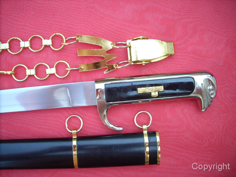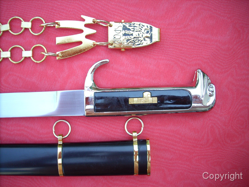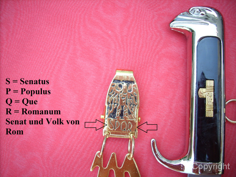 Kettendolch der Faschisten Italiens, 2. Weltkrieg. Eingelegte Lektorenbündel auf jeder Seite des Griffes. Sehr schöne Sammleranfertigung. Zustand siehe Fotos, die, wie immer, Bestandteil der Artikelbeschreibung sind.