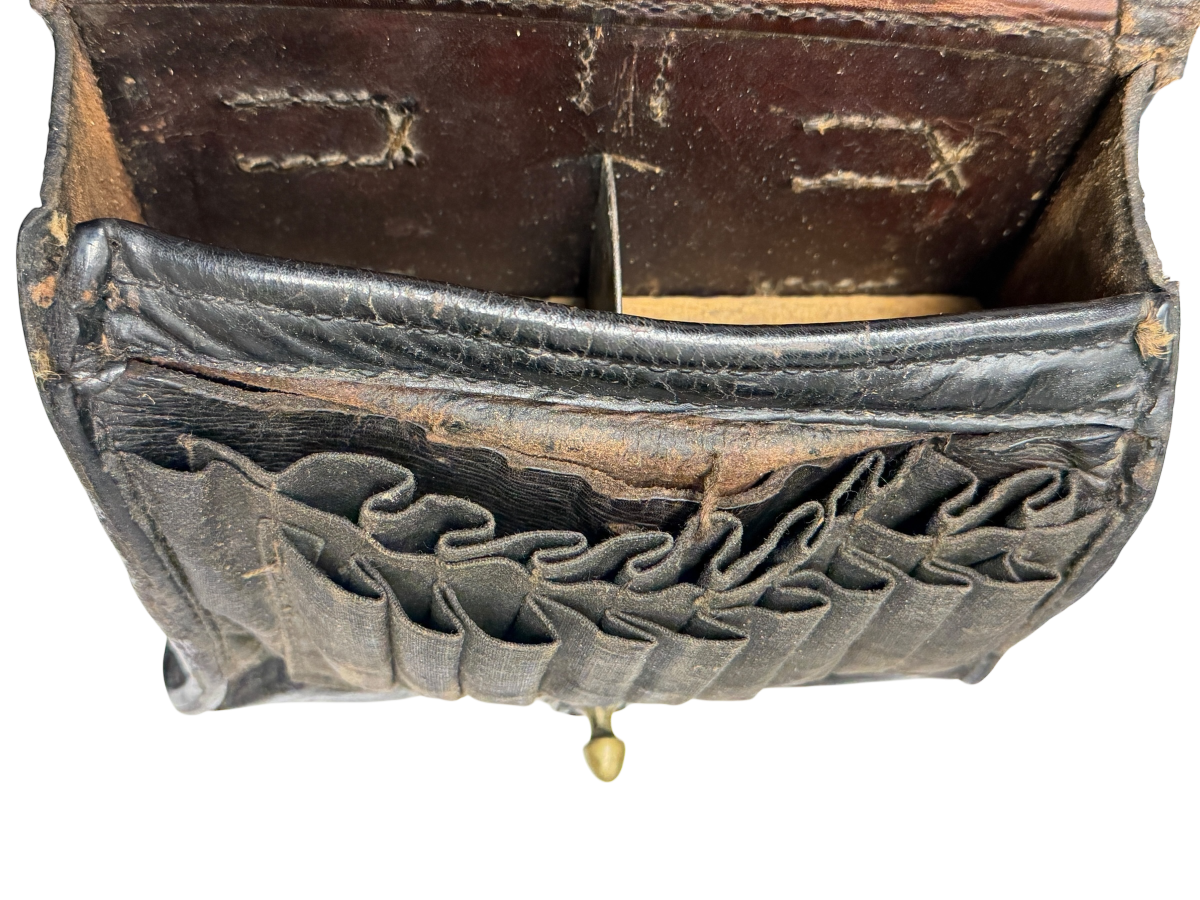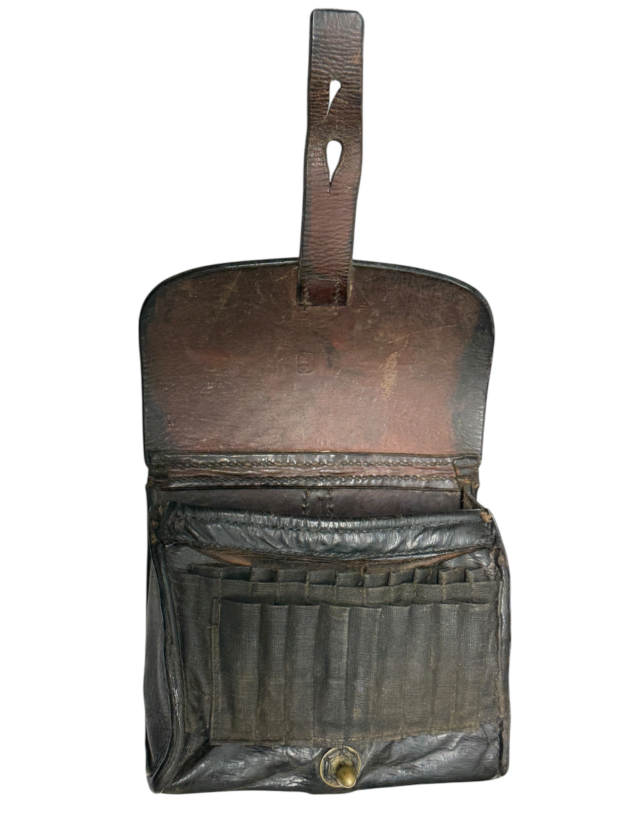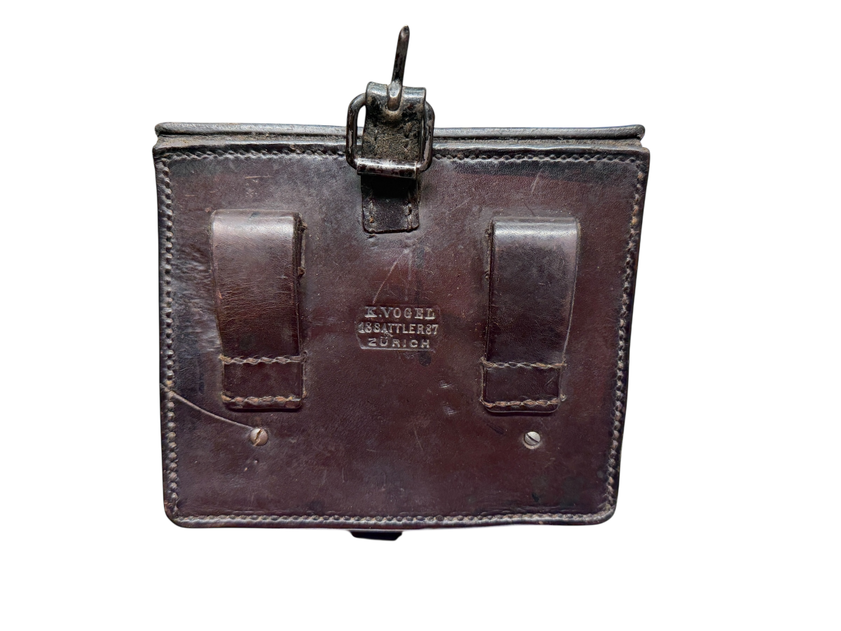 Zum Verkauf kommt diese Patronentasche für das Vetterli-Gewehr aus dem Jahr 1887. Bitte entnehmen sie den Zustand den Bildern. Keine Beschädigung, lediglich die Naht an der linken, vorderen Ecke ist ca. 2cm offen.