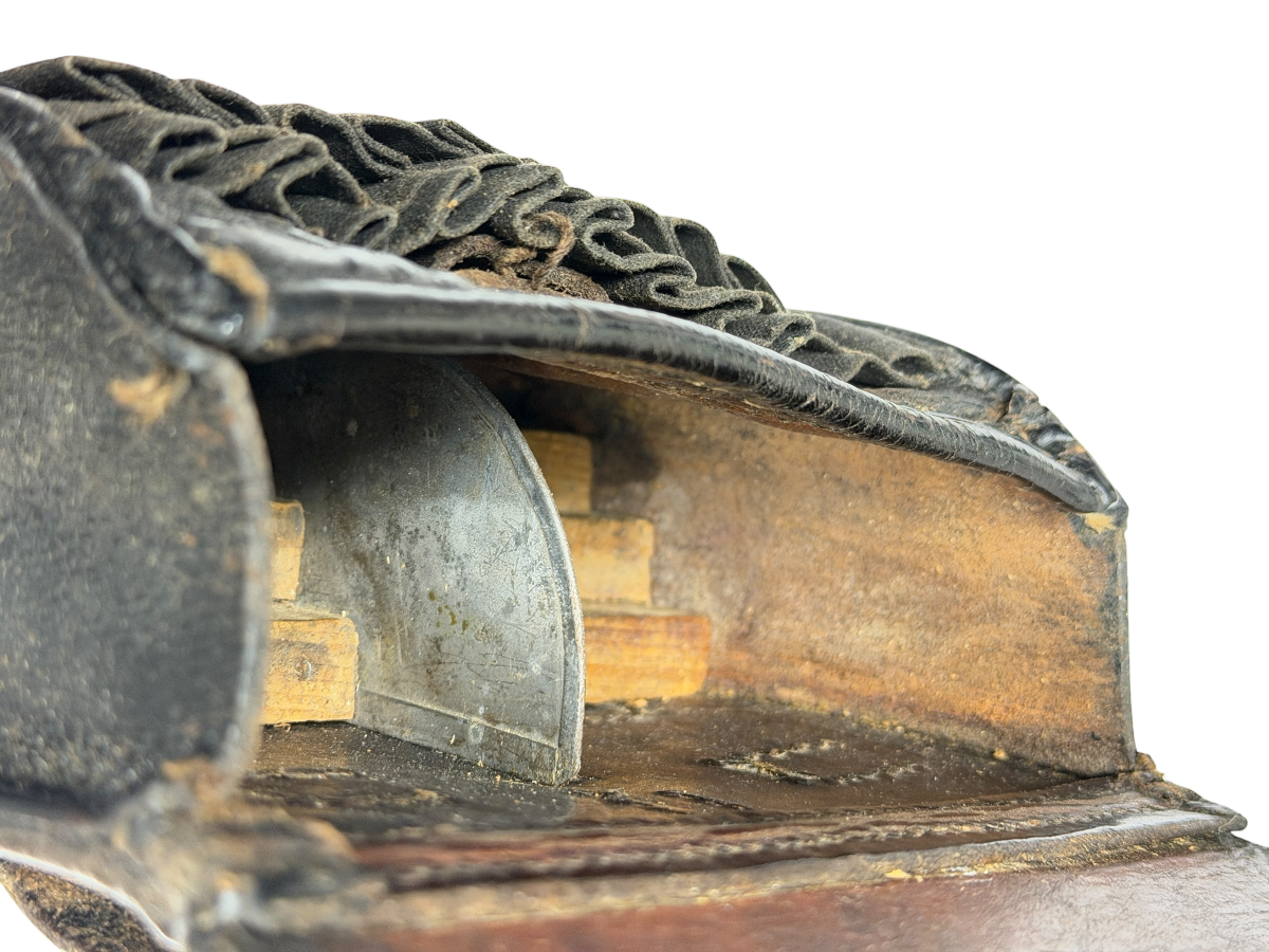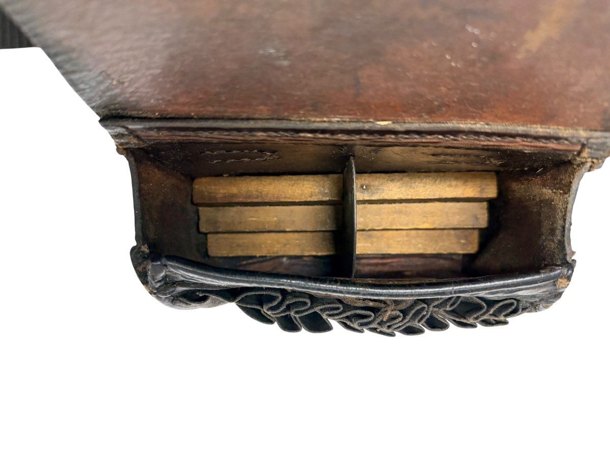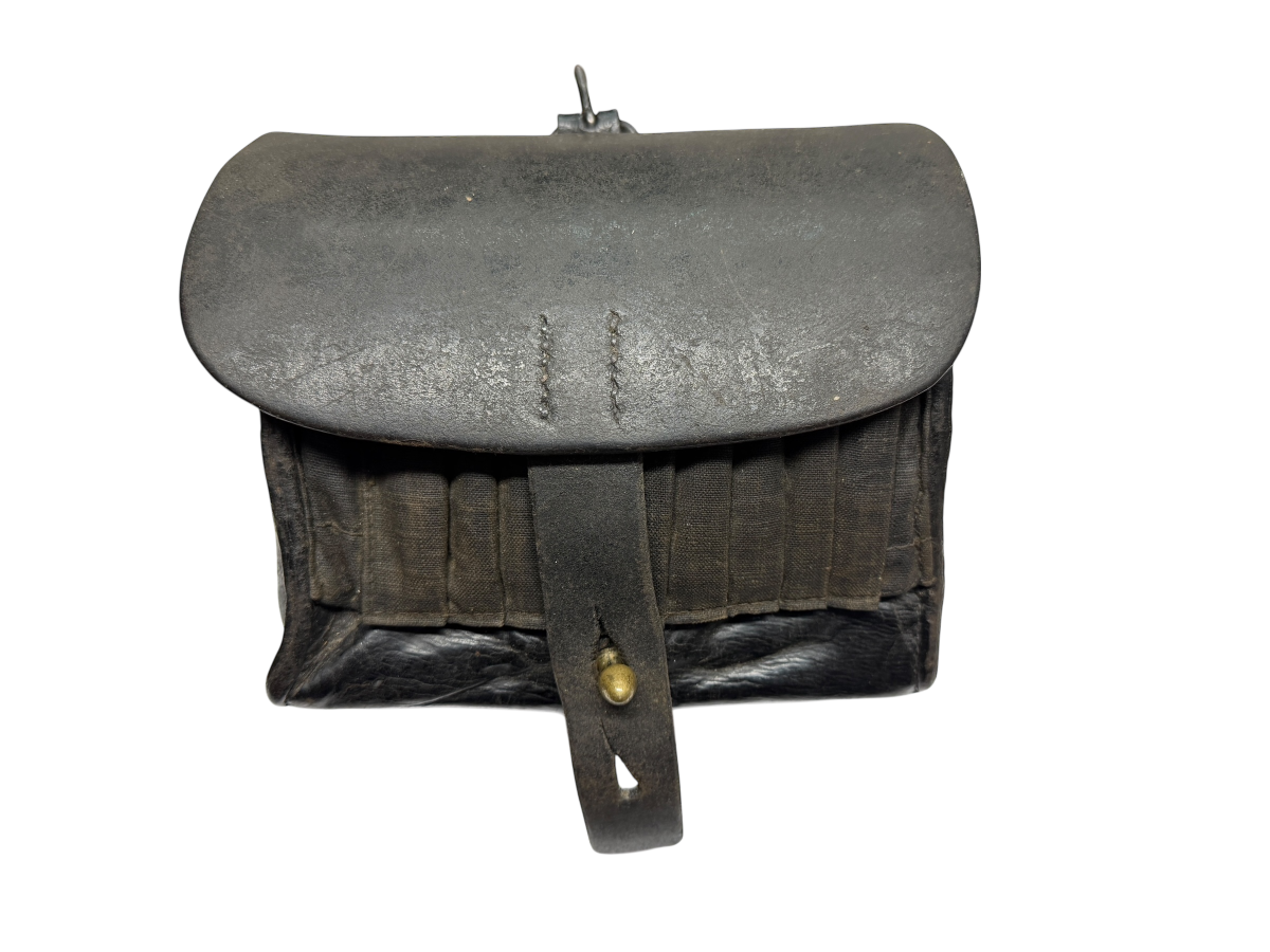 Zum Verkauf kommt diese Patronentasche für das Vetterli-Gewehr aus dem Jahr 1887. Bitte entnehmen sie den Zustand den Bildern. Keine Beschädigung, lediglich die Naht an der linken, vorderen Ecke ist ca. 2cm offen.