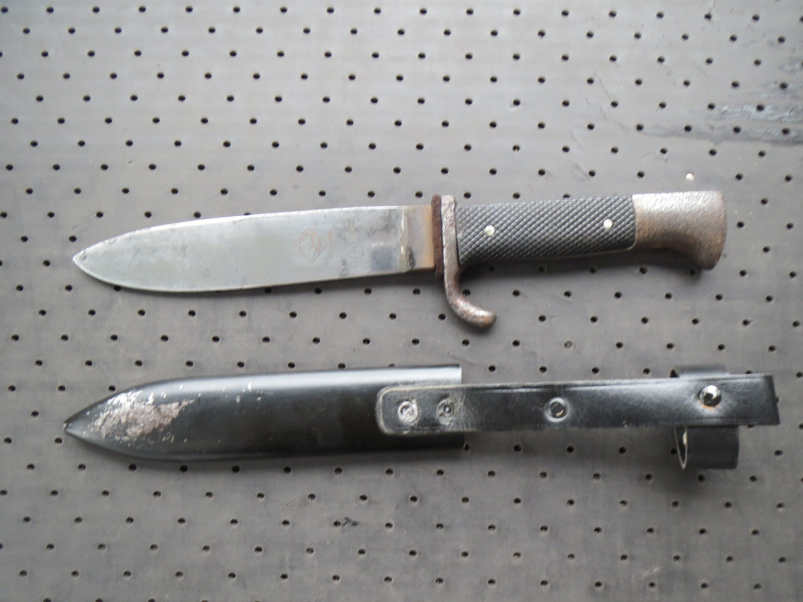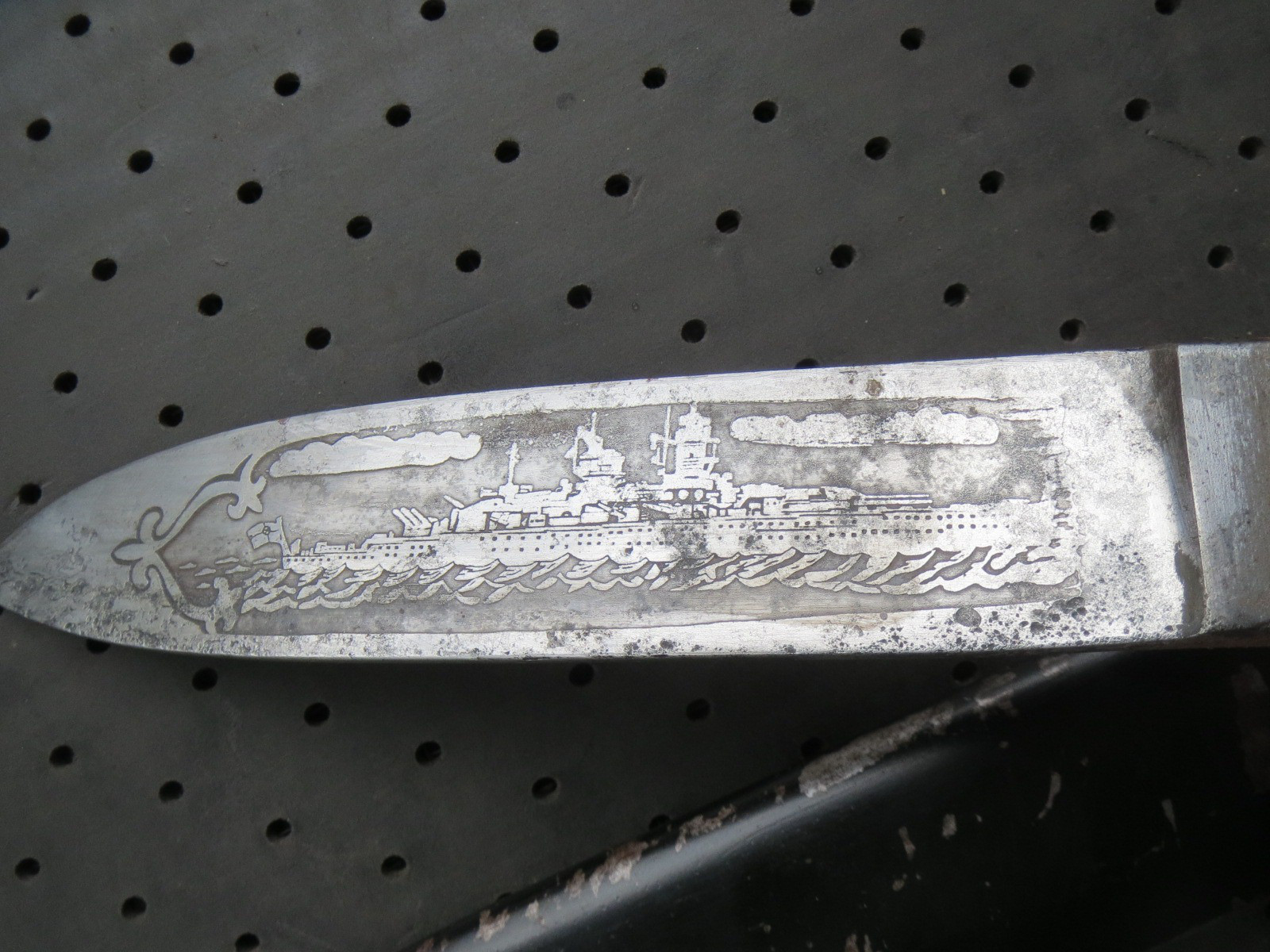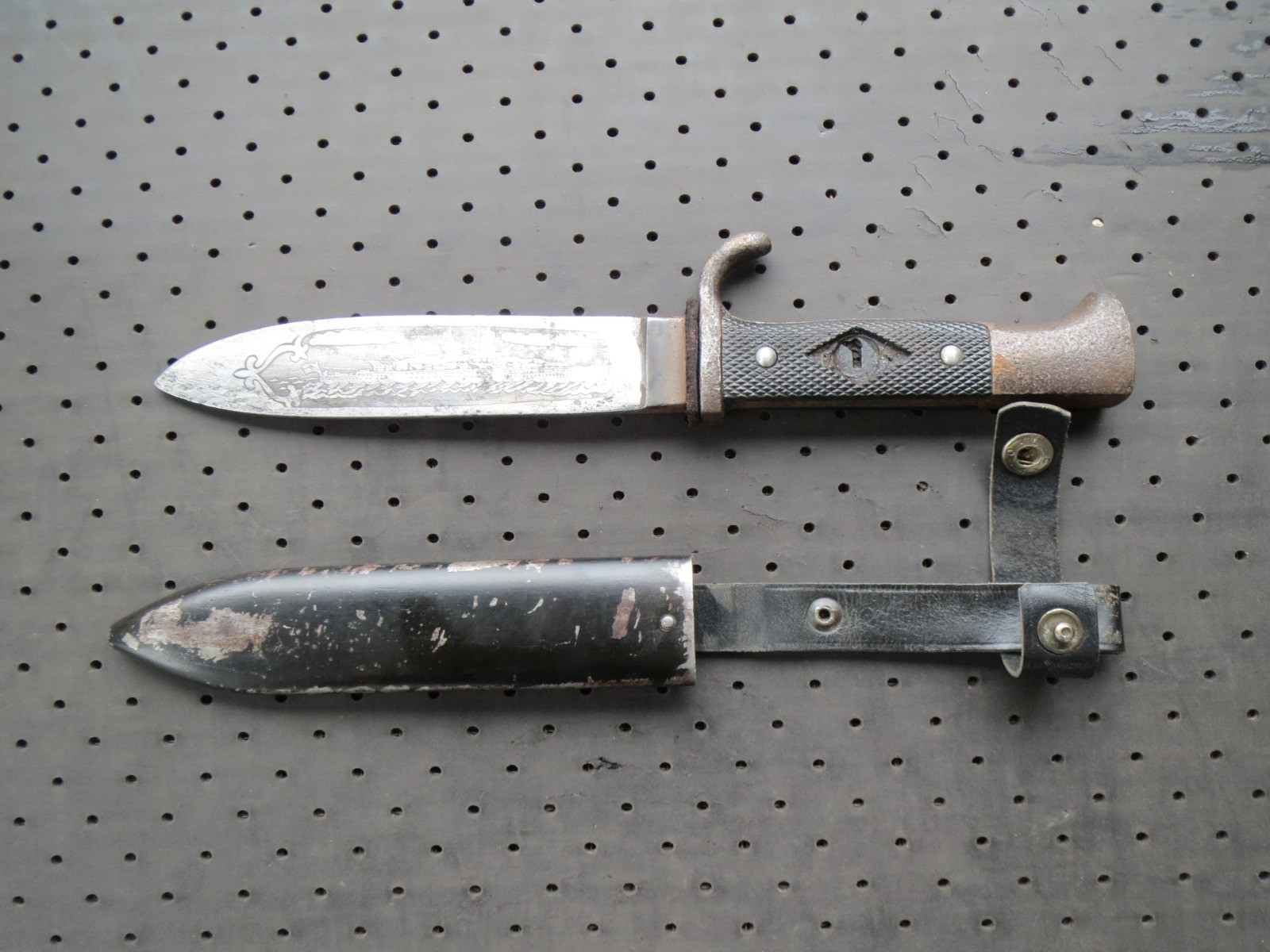 Hier steht ein HJ Messer zur Auktion. Kein Bestzustand aber dafür mit sehr seltener Ätzung auf der Klinge eines Zerstörers der Kriegsmarine