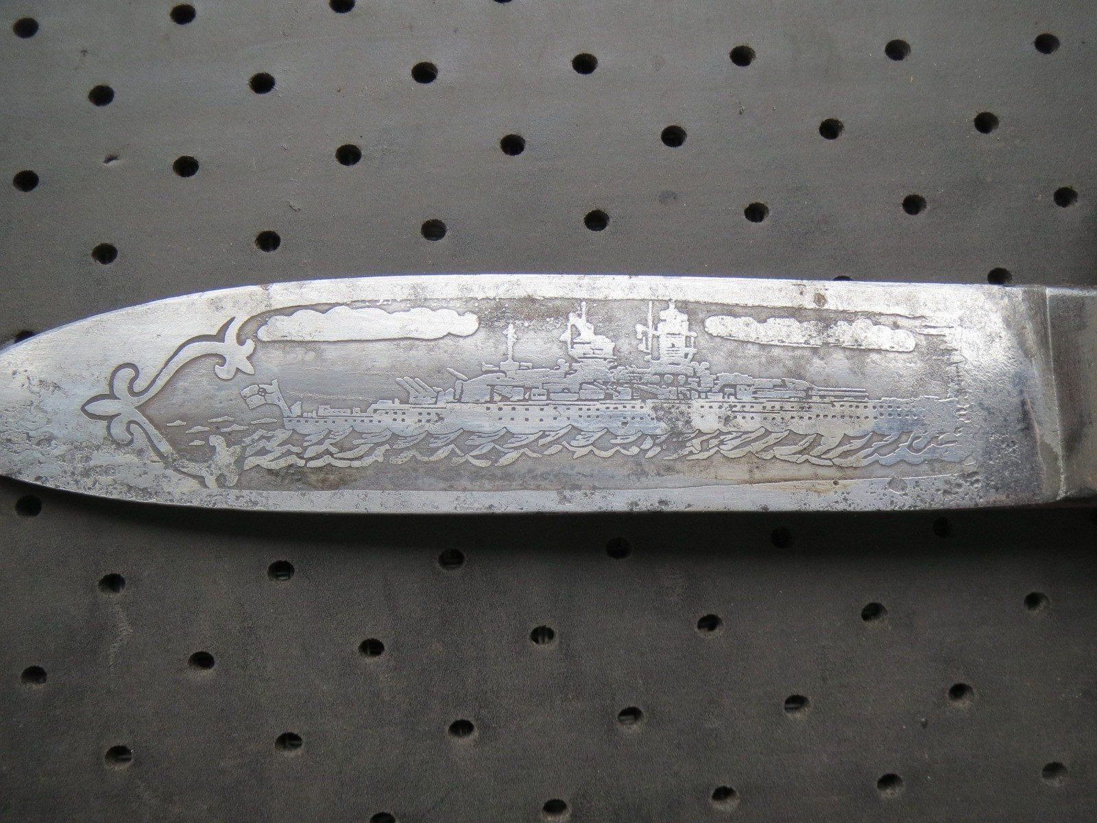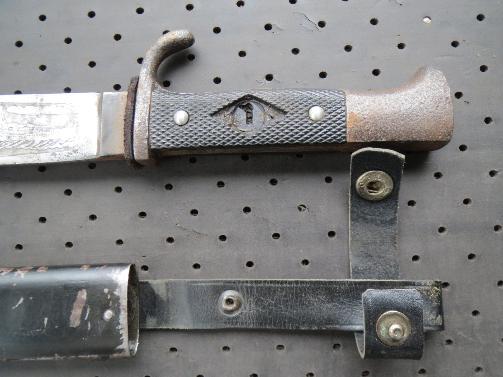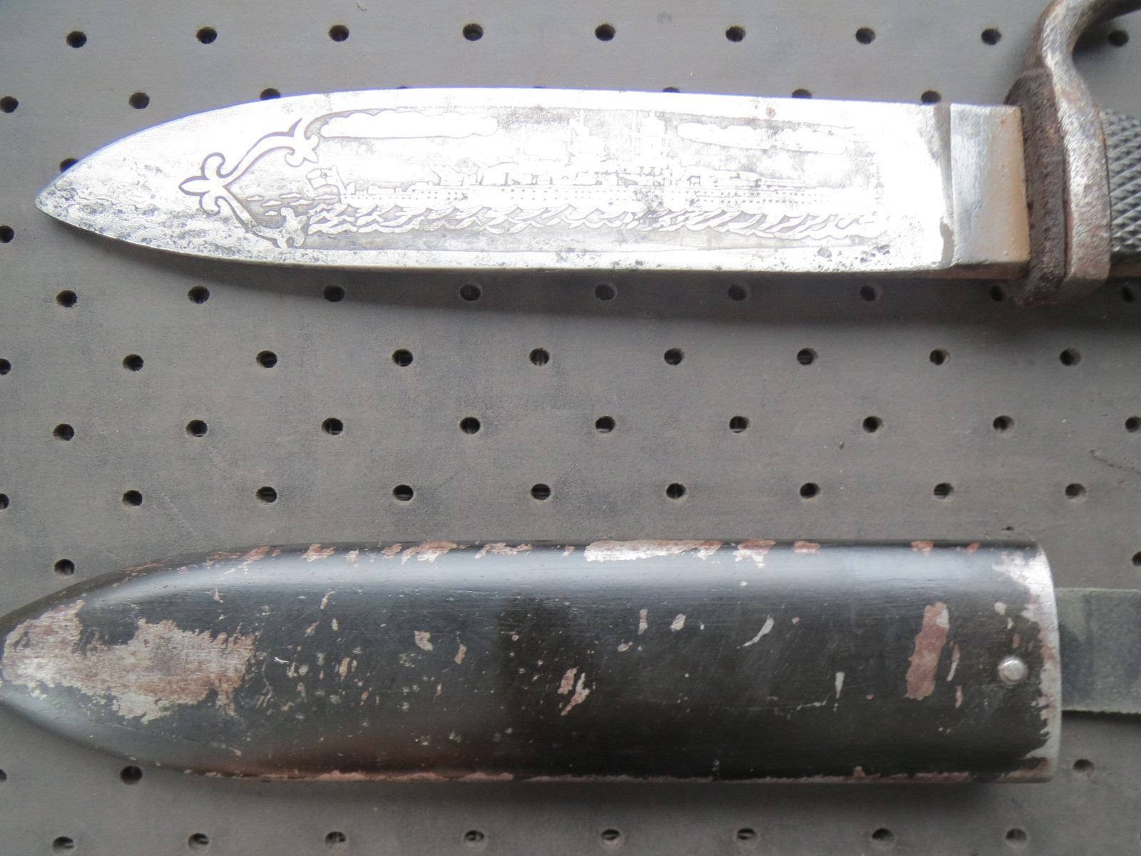 Hier steht ein HJ Messer zur Auktion. Kein Bestzustand aber dafür mit sehr seltener Ätzung auf der Klinge eines Zerstörers der Kriegsmarine