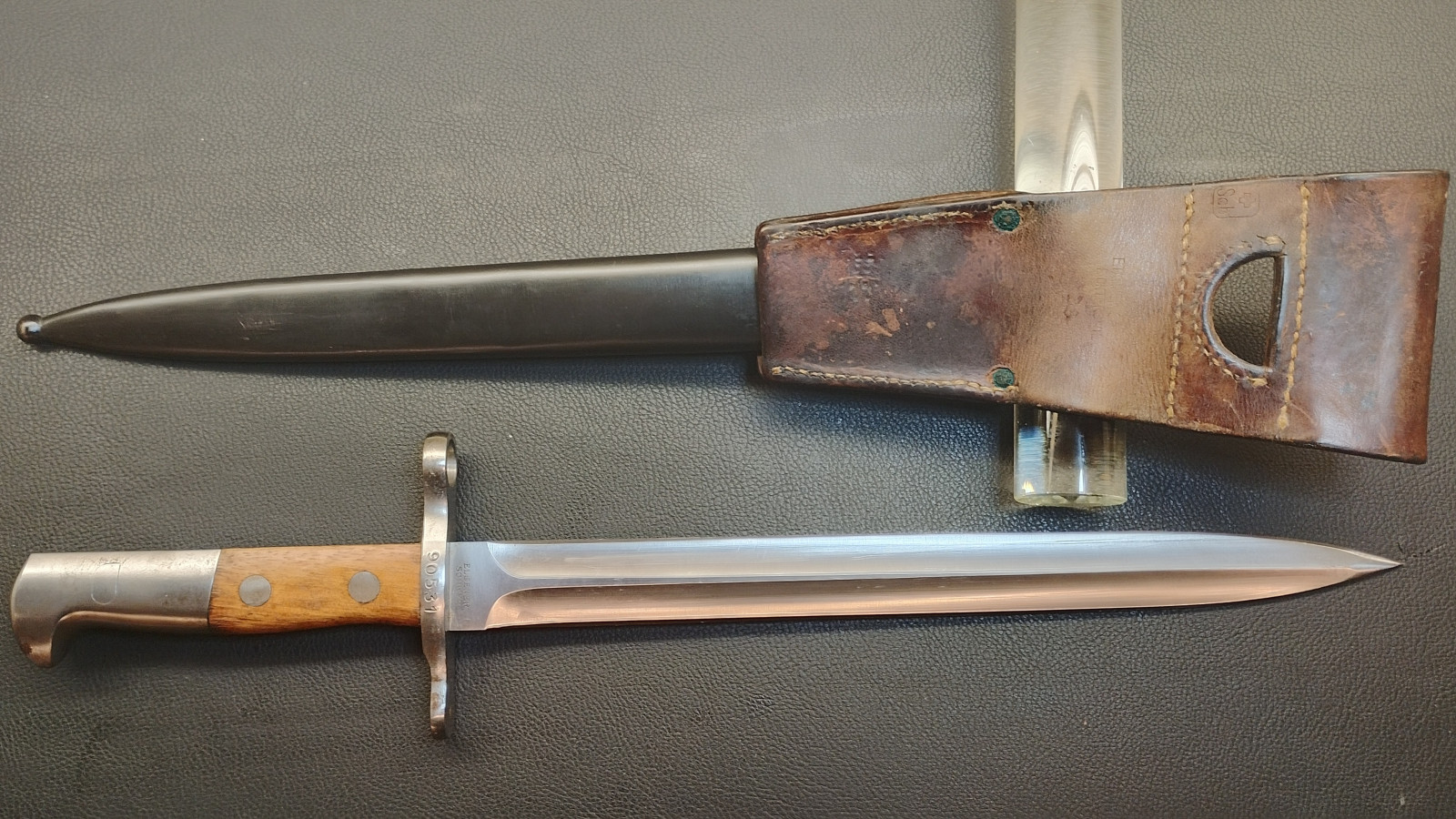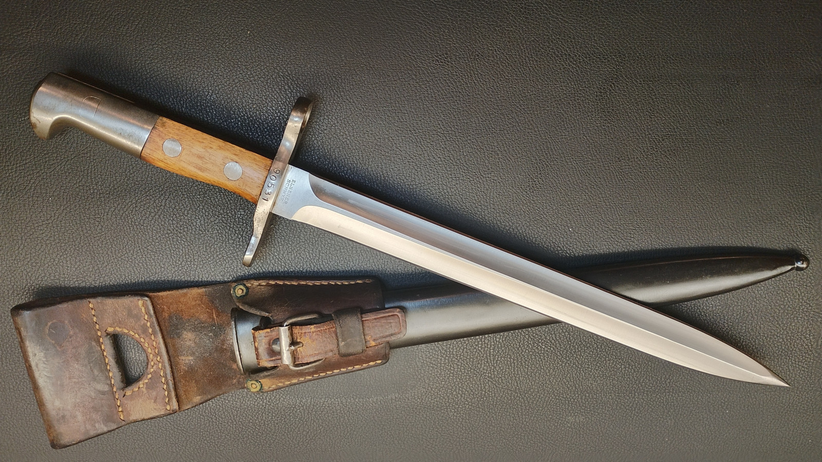 Verkaufe aus meiner Sammlung , Schweizer Bajonett M1918 (Stich Bajonett),Elsener Schwyz , Drücker leichtgängig , Klinge beidseitig geschliffen , Klingenlänge 30 cm , Gesammtlänge ohne Scheide 43 cm . Erhaltungszustand ist Ansichtssache.Bitte schätzen Sie den Zustand des angebotenen Artikels anhand der Bilder selbst ein . Bilder sind Gegenstand der Auktion