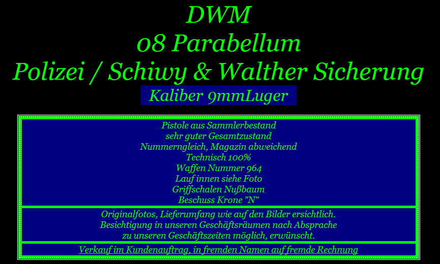 Bei der angebotenen Ware handelt es sich um eine gebrauchte Waffe, die einen historischen Wert als Sammlerstück hat und zudem als Antiquität zu bezeichnen ist.