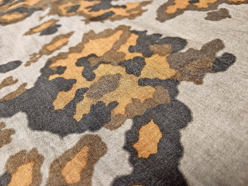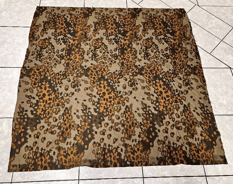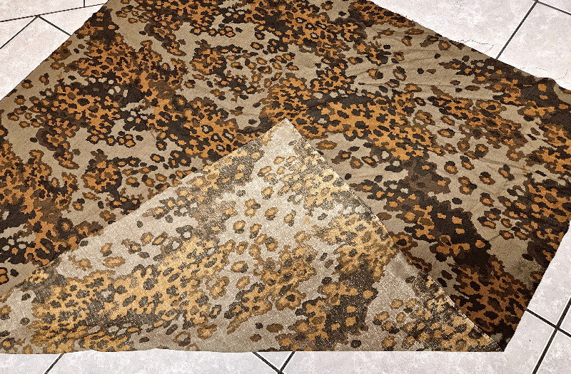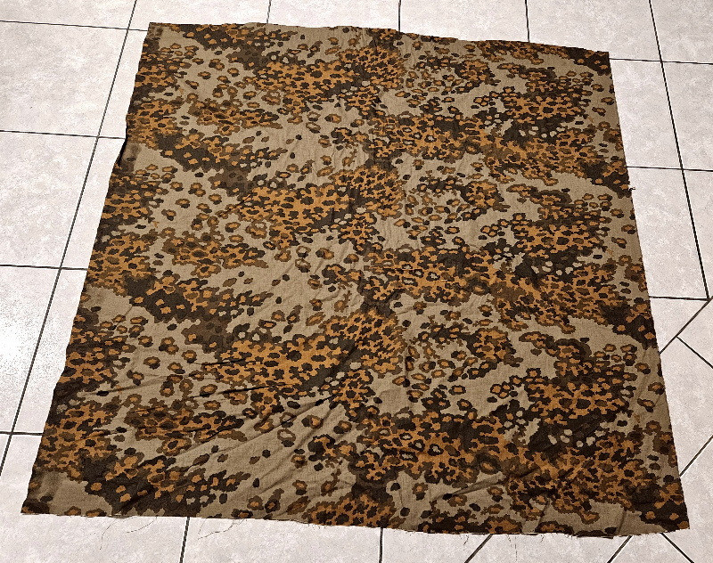 Echt großes Stück mit den Maßen von rund 140 x 140 cm; war beim Auffinden etwas angeschimmelt und wurde somit auch schon mal gewaschen; somit echt schöner Gesamtzustand - absolut rein, keine Mottenlöcher, keine Beschädigungen,.....wurde es nun als neuwertiger Zustand bezeichnen - in dieser Größe und in diesem Zustand eine absolute Rarität. Ideal zum Flicken bon beschädigter Kleidung, beschädigten Helmbezügen oder beschädigten Zeltplanen,......