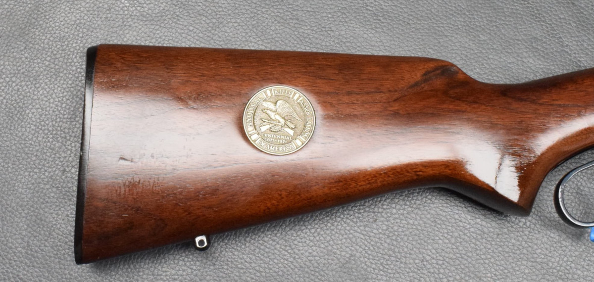 auf der rechten Hinterschaftseite eingelegte Medaille mit dem 'NRA'-Logo