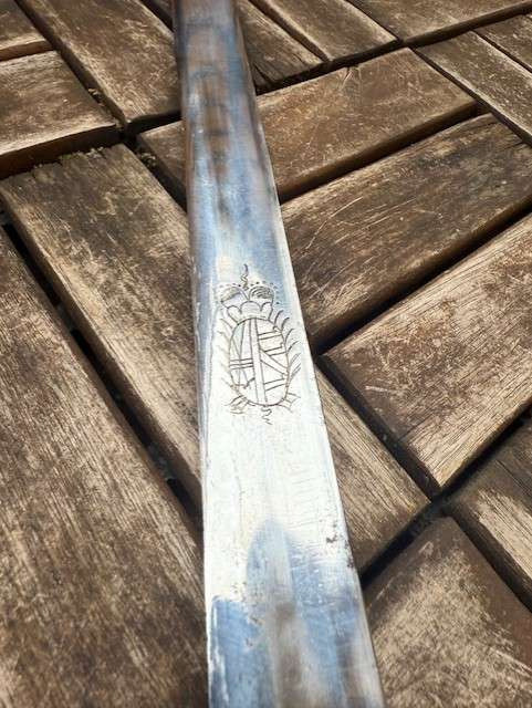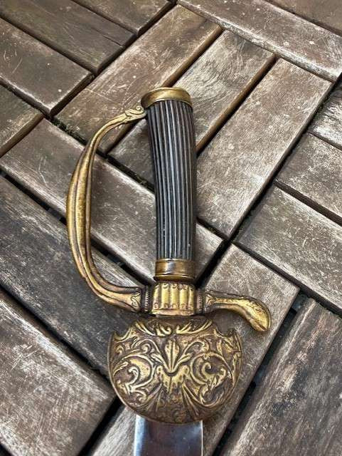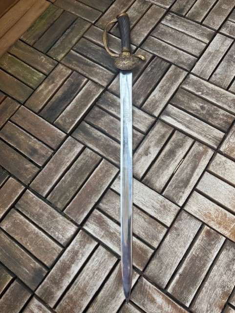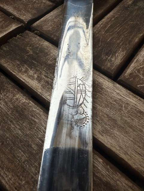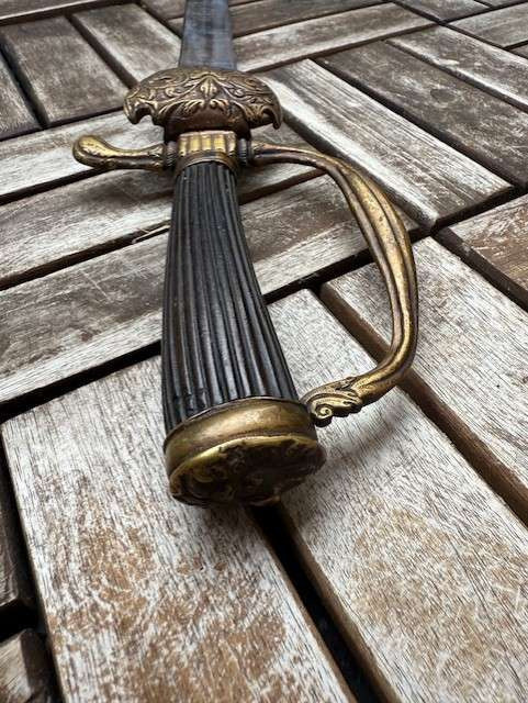 Prunkvoller Hirschfänger XIX Jahrhundert Sachsen Gesamtlänge 69 cm,Klingenlänge 54,5 cm .Klinge beidseitig mit Ornamenten versehen,Typische Palaschklinge ,sehr schönes und frühes Stück ,Schöner Stichblatt,Hebangriff.Versandkosten innerhalb Deutschlands 15 Euro,EU 25 Euro