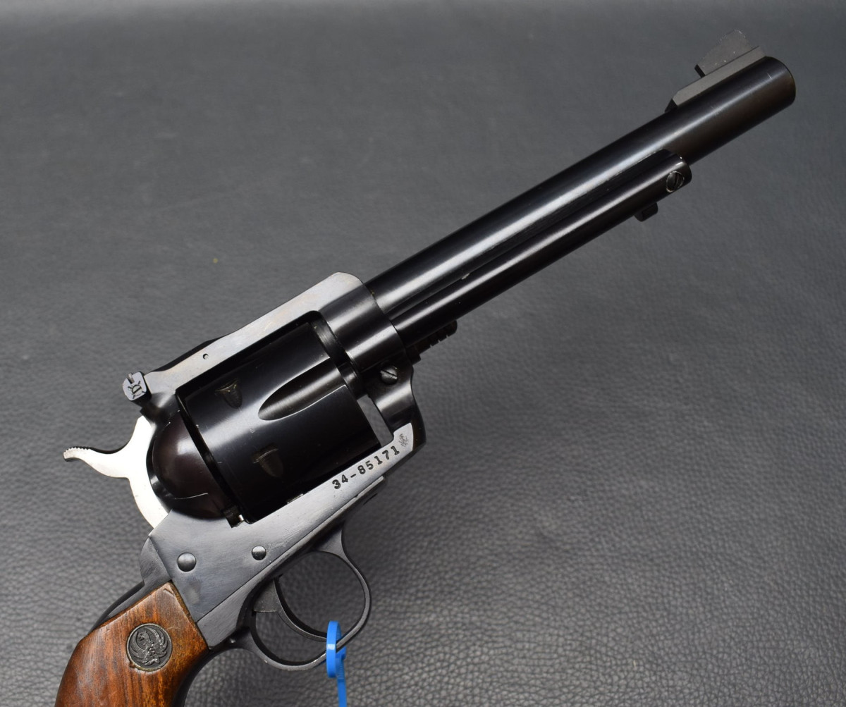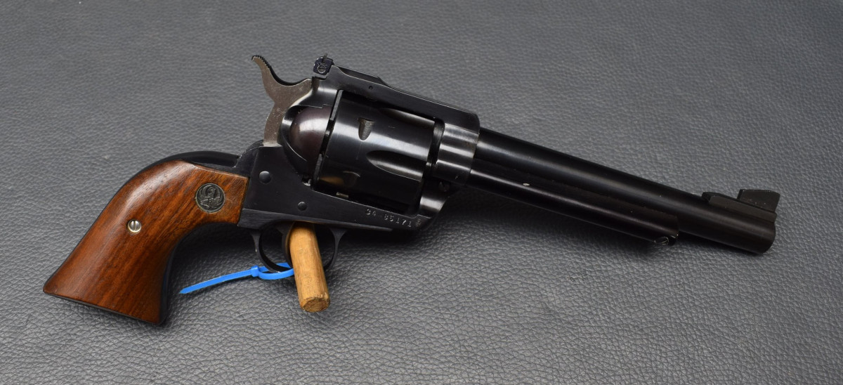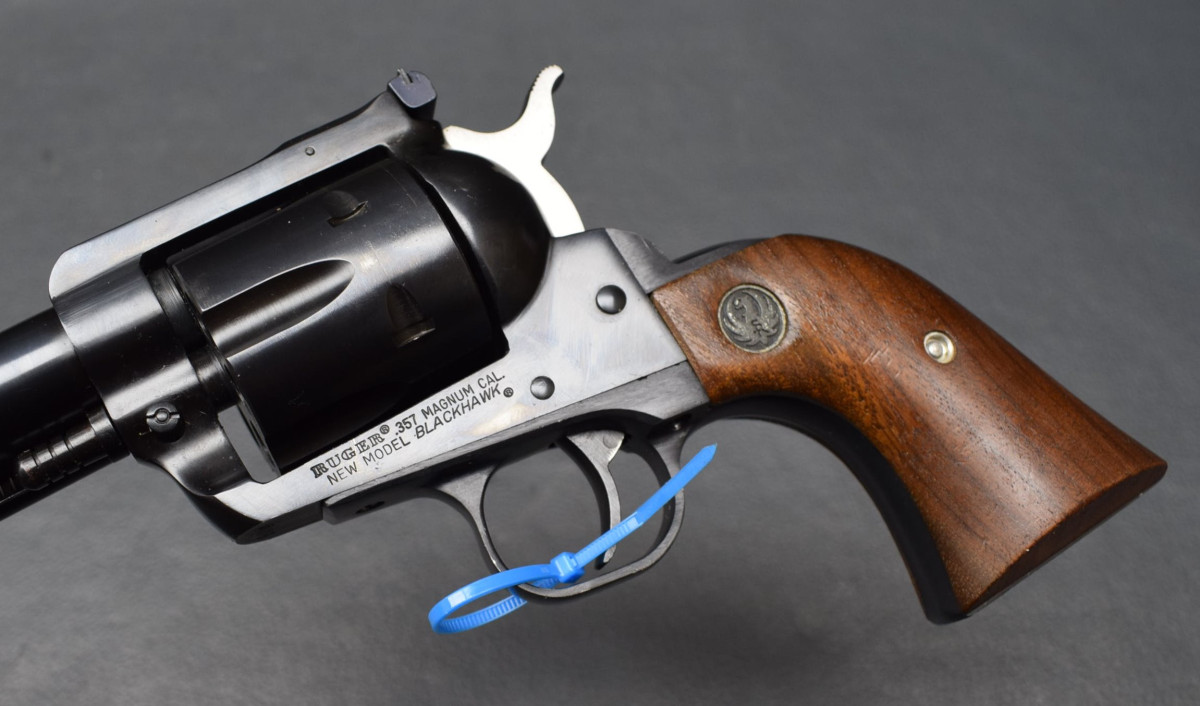 Ruger Blackhawk, Kaliber 357 Magnum schwerer SAA Revolver mit 6,5" Lauflänge, verstellbarer Micrometervisierung, Lauf und Trommelbohrungen sehr gut, Oberfläche 97%