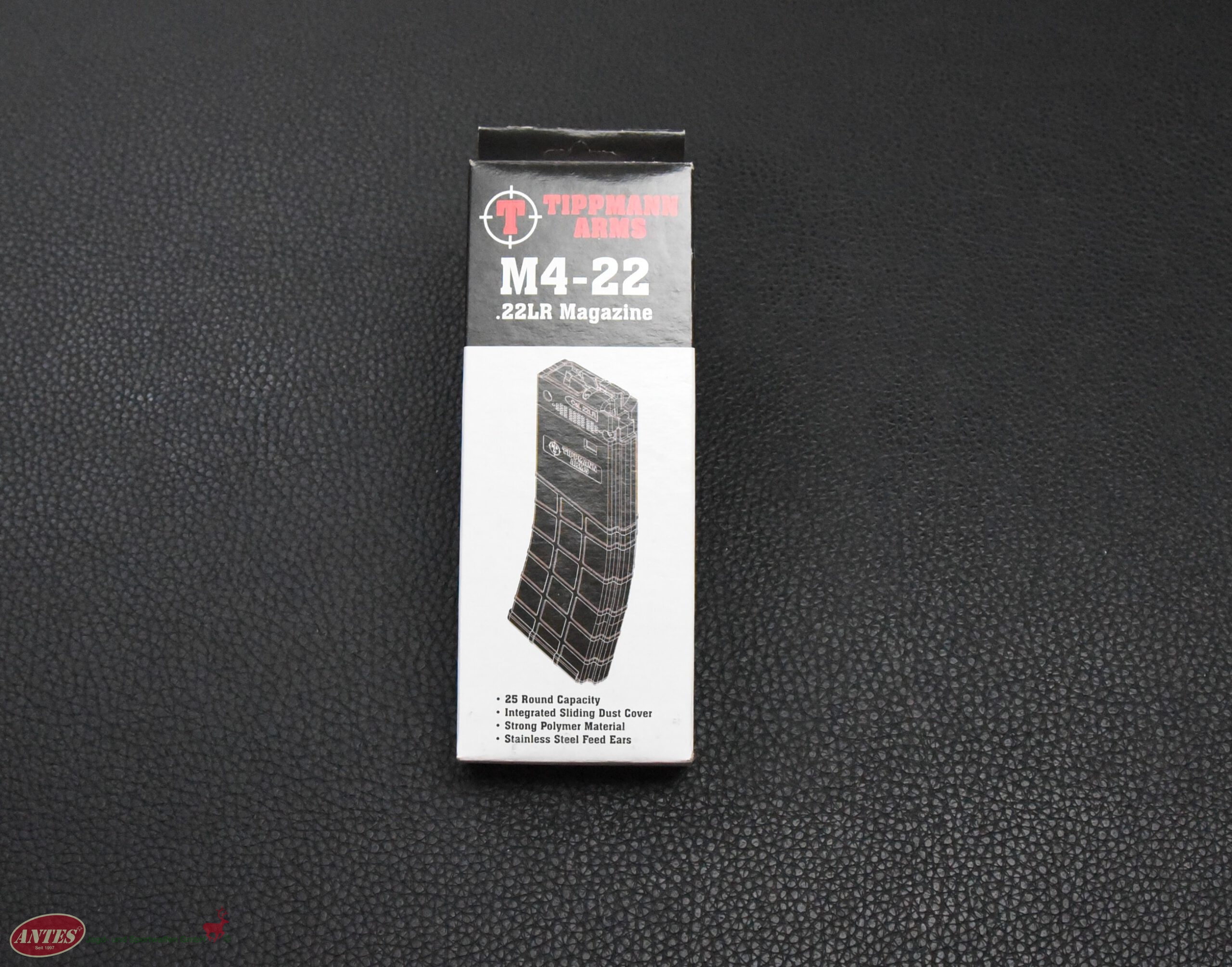Original Tippmann Magazin für Mod. M4-22Kal. .22 LR; 25 SchussOrginal Tippmann Magazin für Mod. M4-22. Kaliber: .22 LR Magazinkapazität: 25 Schuss. Neuware aus Geschäftsauflösung. Zustand siehe Bilder.