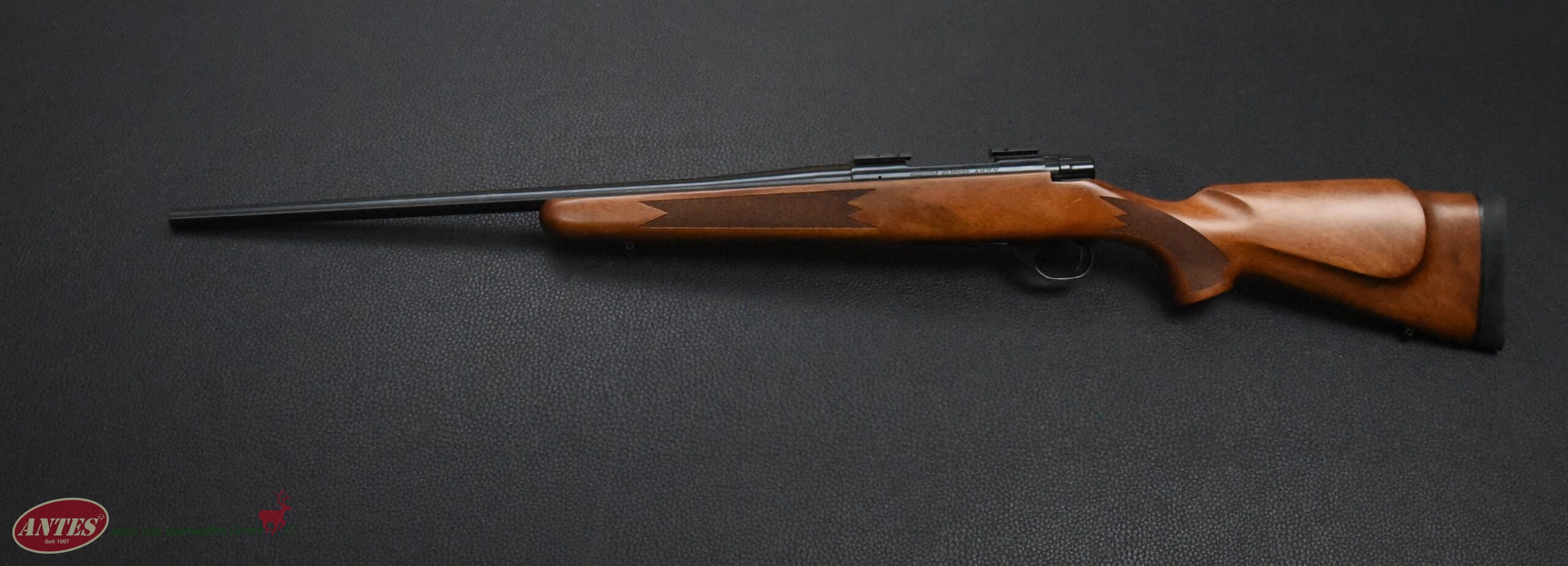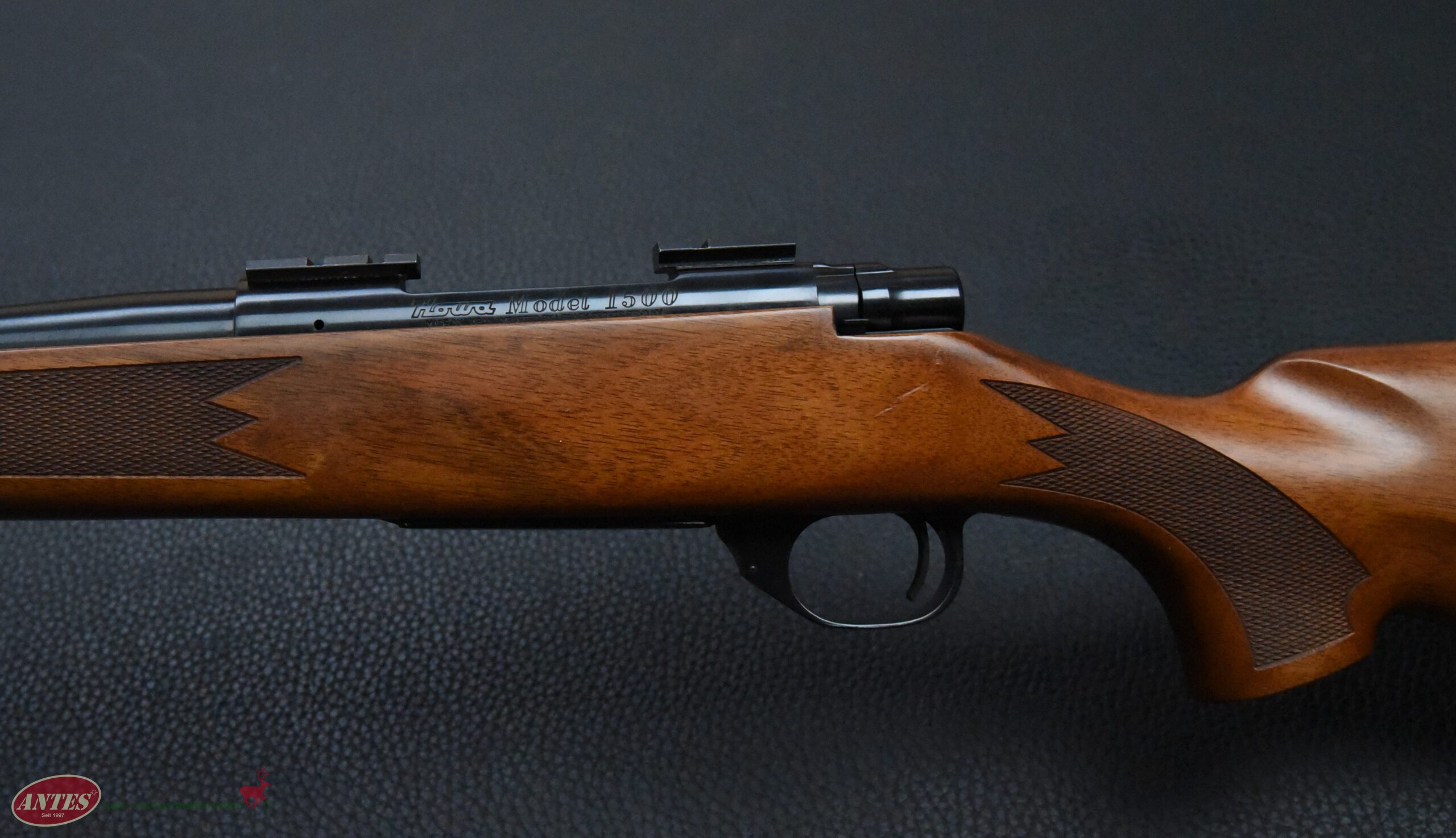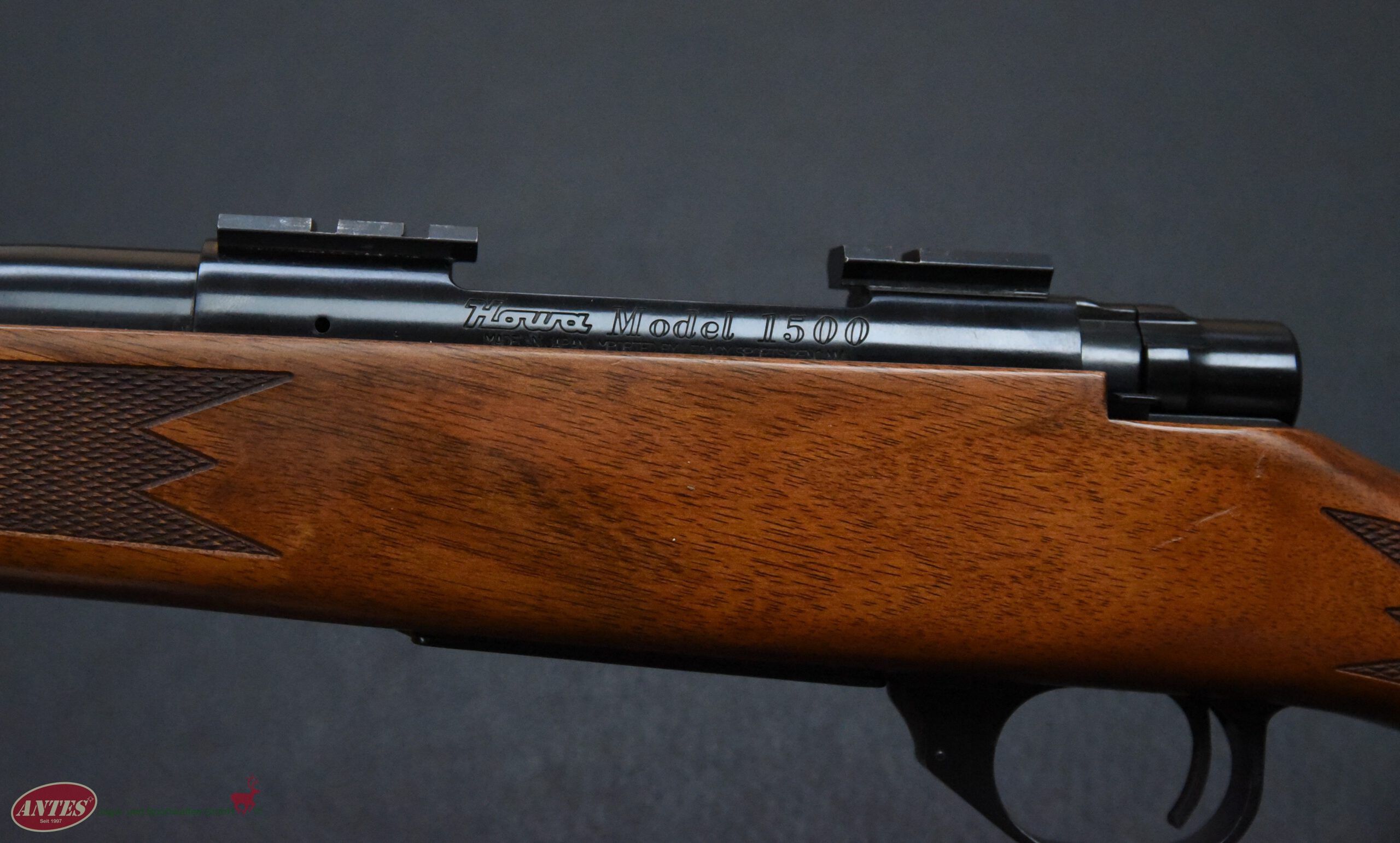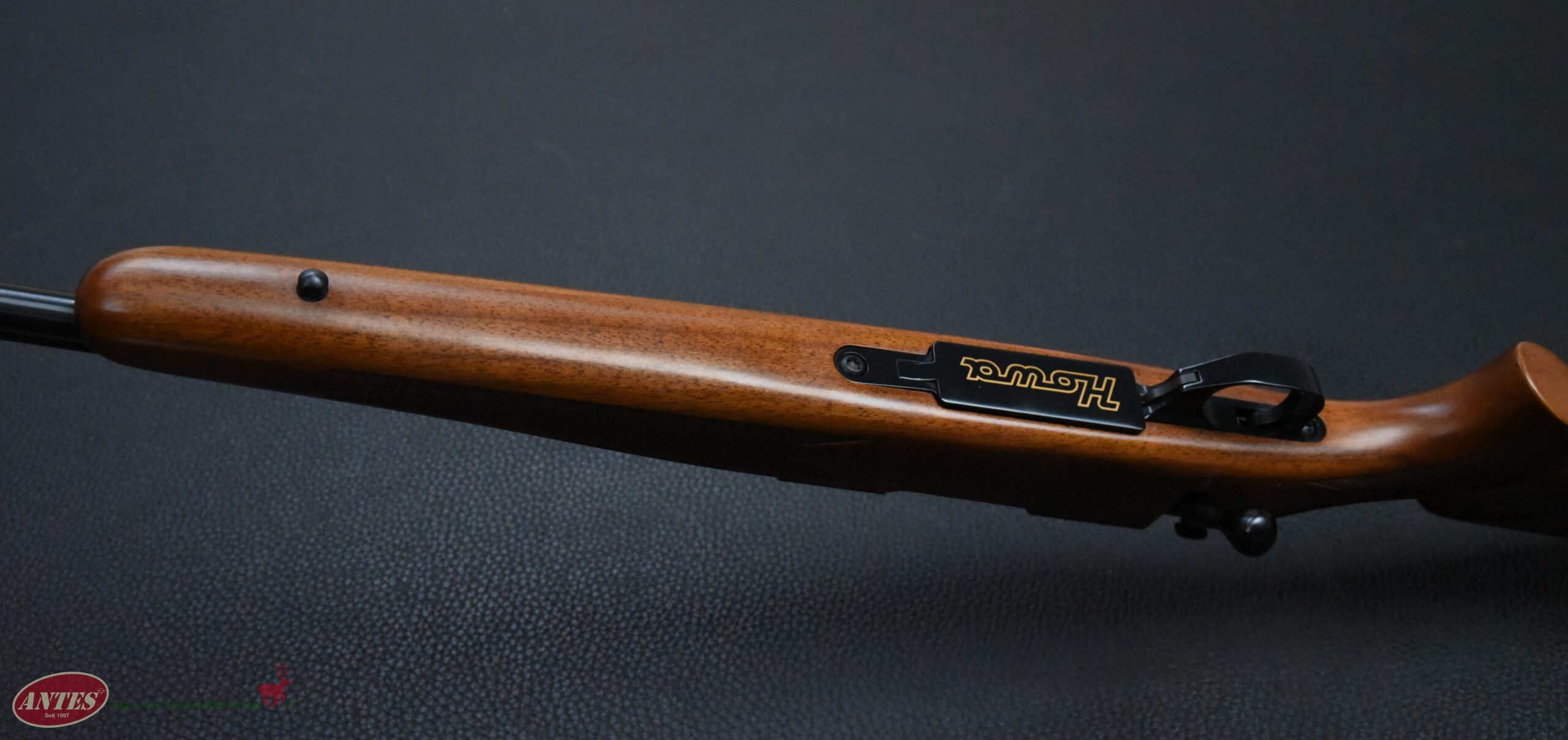 Howa Repetierbüchse Mod. 1500 HunterKal. 6,5 mm CreedmoorHowa Repetierbüchse Mod. 1500 Hunter in brünierter Ausführung. Klappdeckelmagazin für 5 Patronen. Druckpunktabzug mit seitlicher Schiebesicherung. Kaliber: 6,5 mm Creedmoor. Lauflänge: 56 cm. Schaftlänge: 35 cm. Gesamtlänge: 1065, cm. Gewicht: 3400 g. Baujahr: 2016 (BG). Montiert mit Weaver Montagesockeln. Sehr guter Zustand mit nur leichten Gebrauchsspuren.