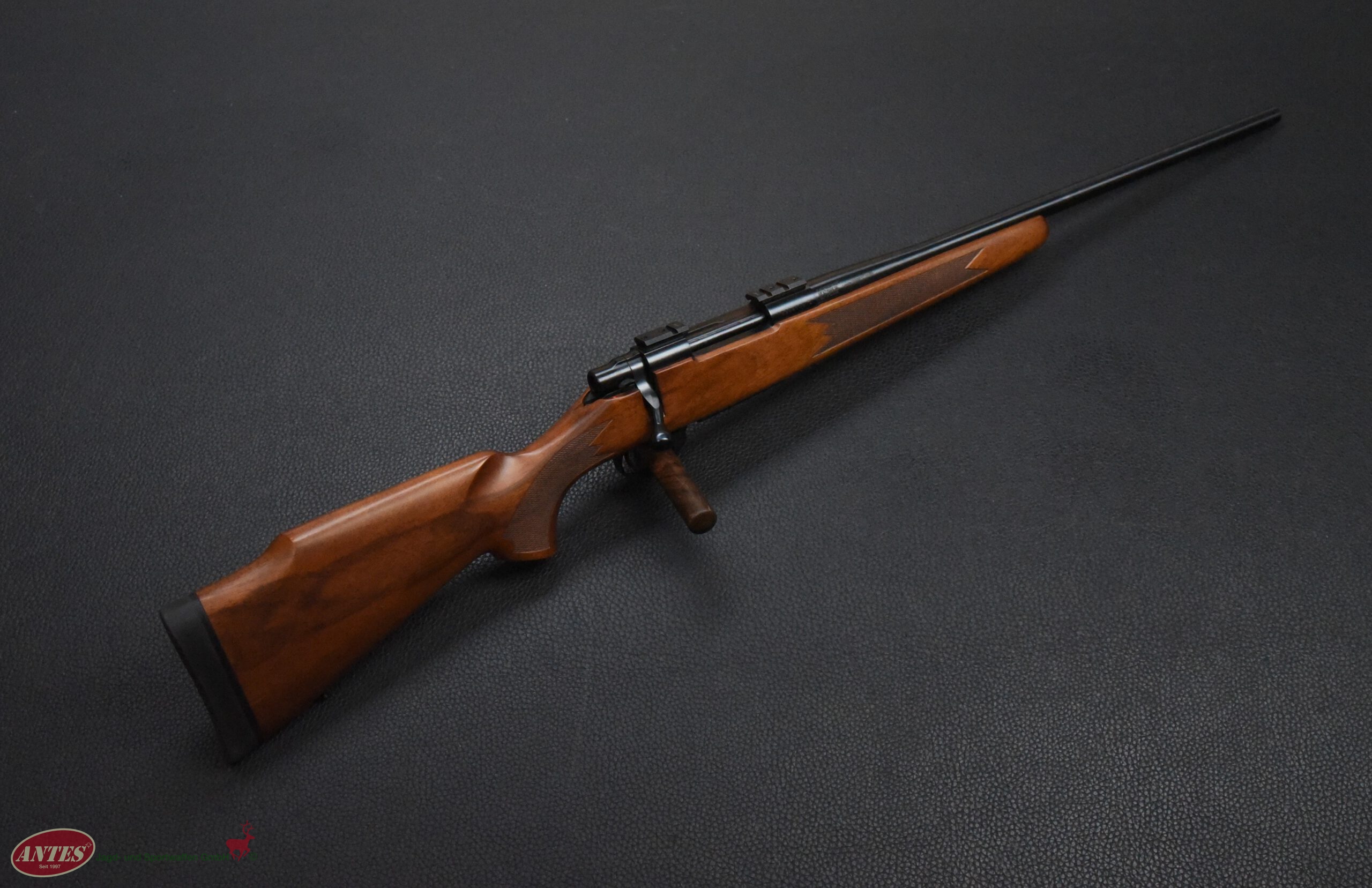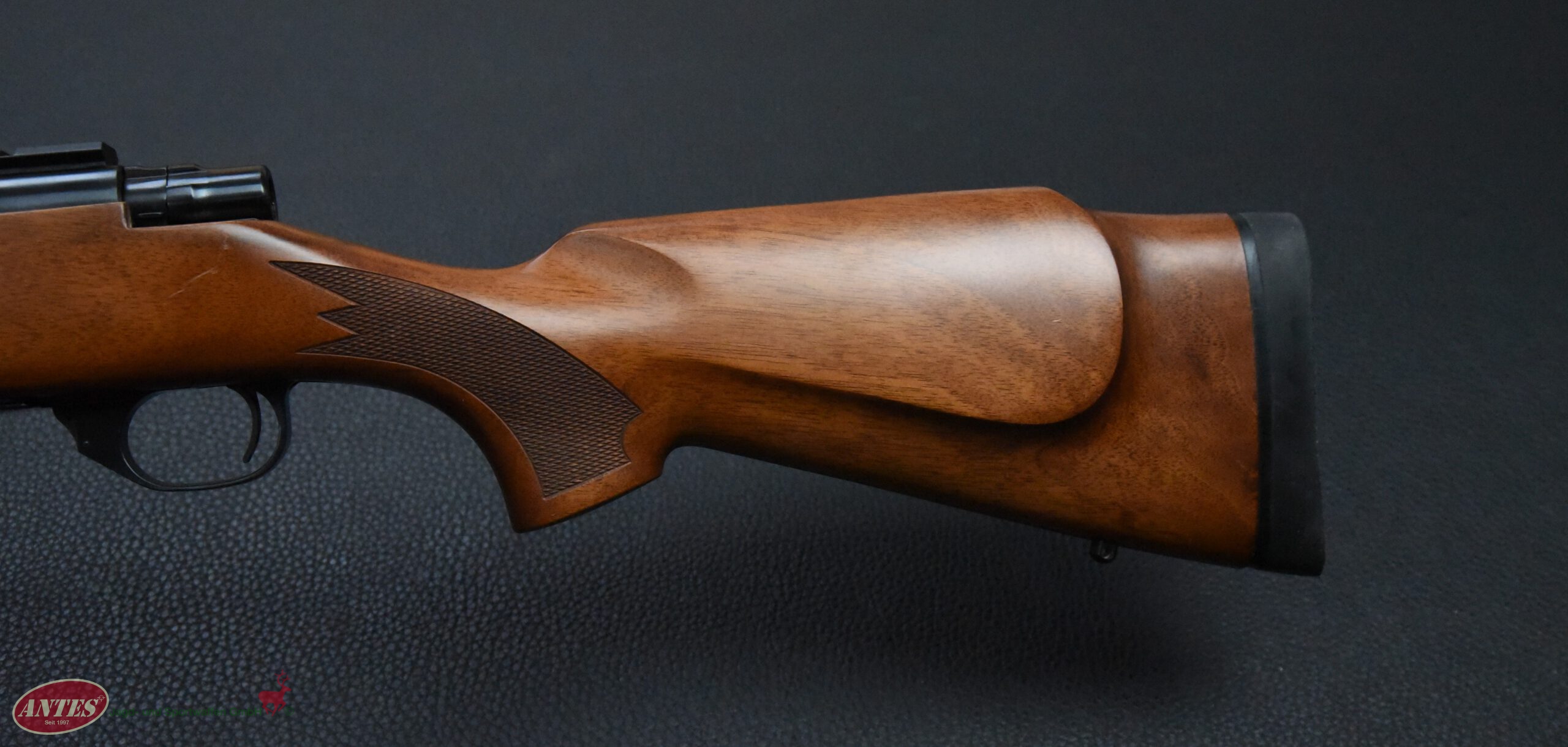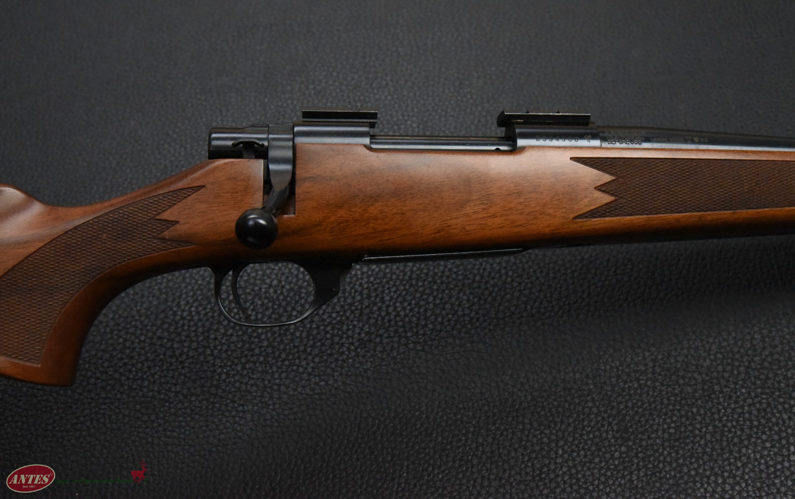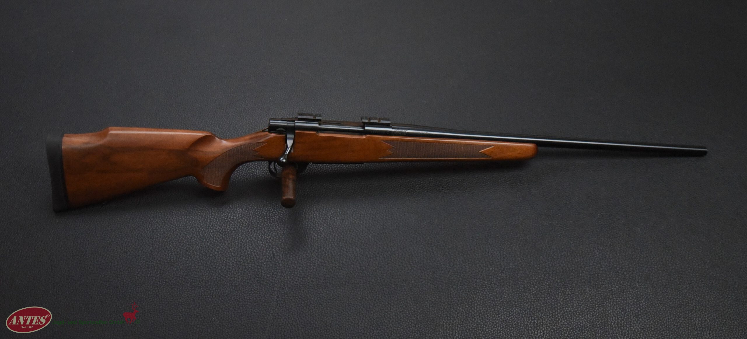 Howa Repetierbüchse Mod. 1500 HunterKal. 6,5 mm CreedmoorHowa Repetierbüchse Mod. 1500 Hunter in brünierter Ausführung. Klappdeckelmagazin für 5 Patronen. Druckpunktabzug mit seitlicher Schiebesicherung. Kaliber: 6,5 mm Creedmoor. Lauflänge: 56 cm. Schaftlänge: 35 cm. Gesamtlänge: 1065, cm. Gewicht: 3400 g. Baujahr: 2016 (BG). Montiert mit Weaver Montagesockeln. Sehr guter Zustand mit nur leichten Gebrauchsspuren.