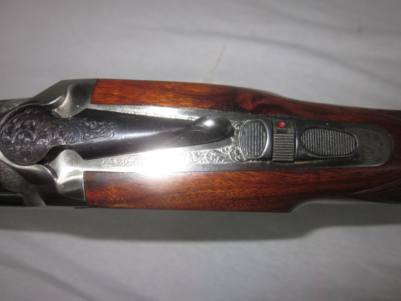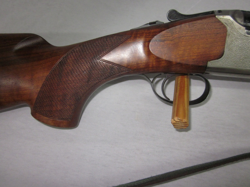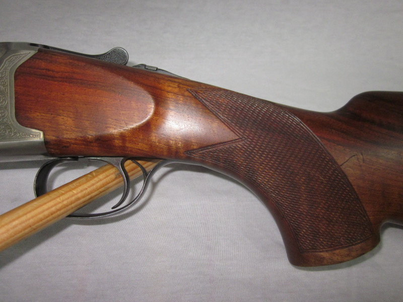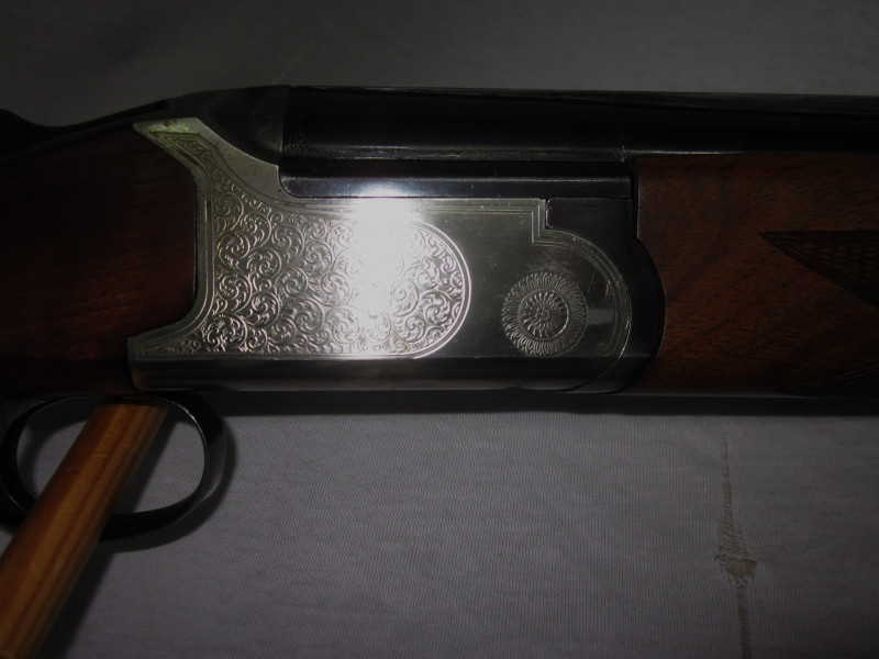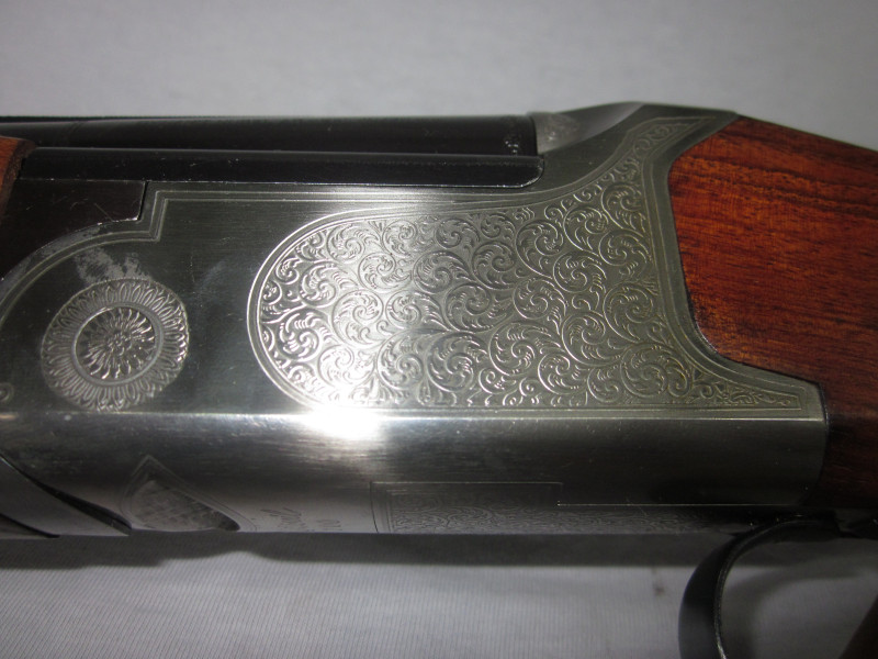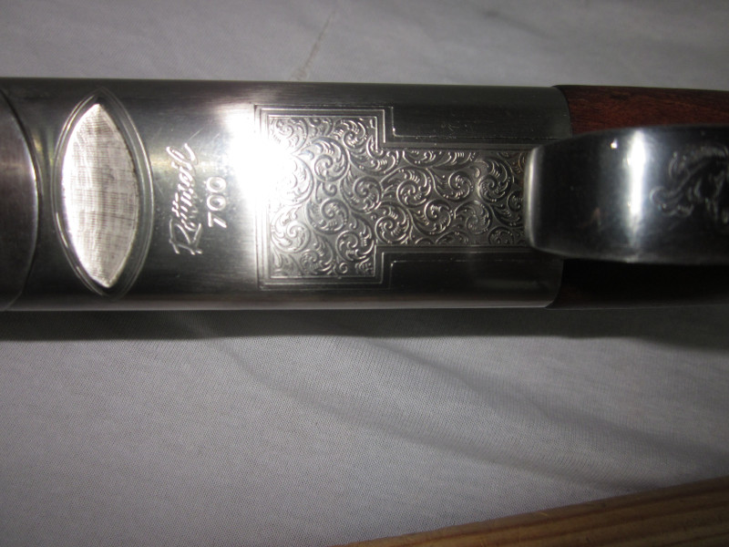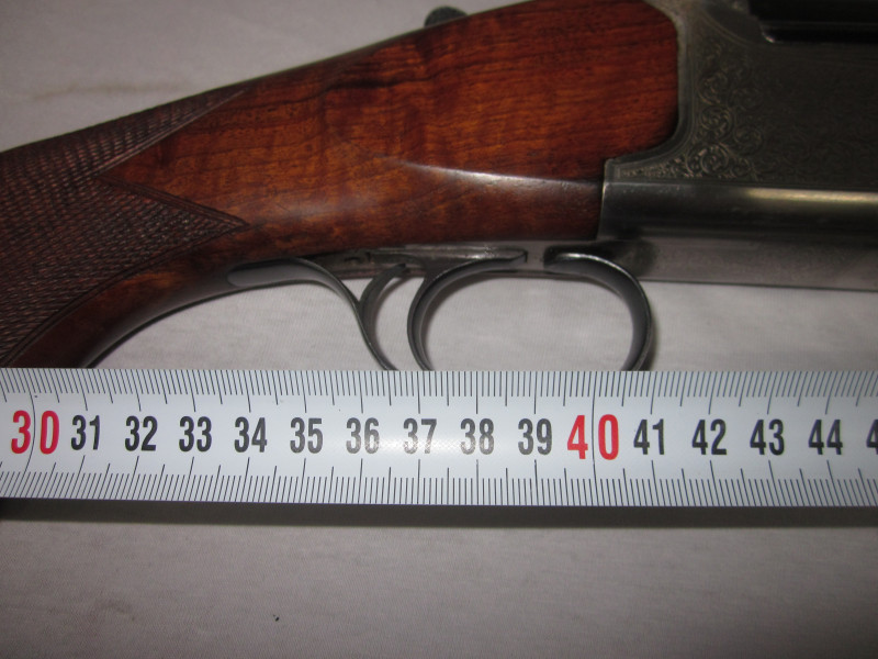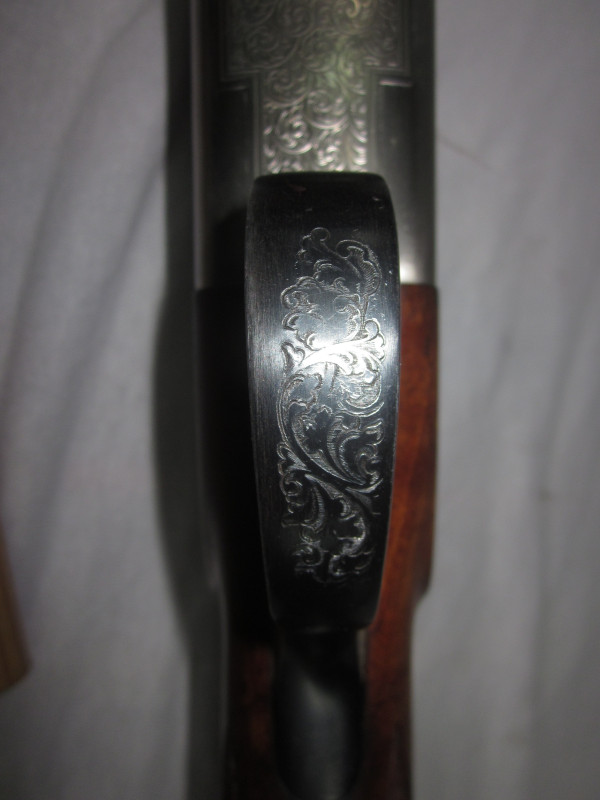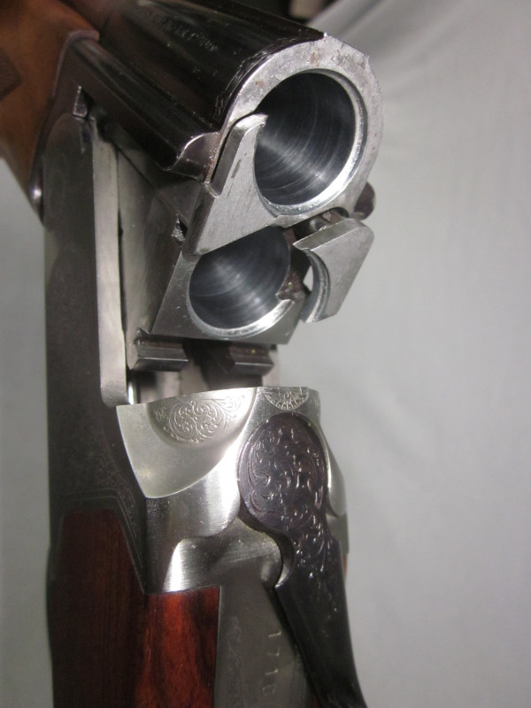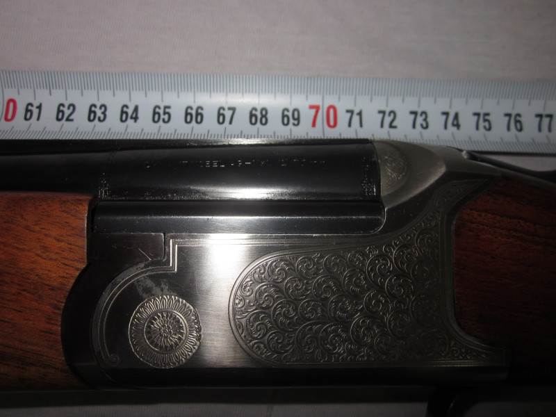 Diese sehr schöne Waffe hat ein sehr ansprechendem Schaftholz und tolle Gravuren. Die Flinte, wurde immer sehr gepflegt und funktioniert einwandfrei. Alles läuft weich und geschmeidig.