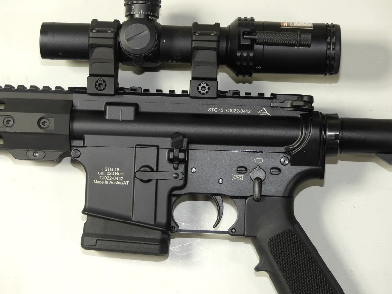 Wir bieten Ihnen hier im Kundenauftrag eine in Österreich von Alpen Arms gefertigte AR 15 Variante mit dem Namen STG 15, im Kaliber .223 Rem. Es hat einen FAB Defence Schubschaft. Aluvorderschaft, siehe Foto. Durch die Lauflänge von 10,5" ist das Gewehr ultrakompakt. 10 Schuss Magpul Magazin. Mittels schnell abnehmbaren, wiederholgenauen Montageringen wurde ein Bushnell AR ZF 1-4x24 mit dimmbaren Leuchtabsehen montiert. Abschraubbarer Mündungsfeuerdämpfer. Somit lässt sich problemlos ein Schalldämpfer anbringen, wenn gewünscht. Diese Lauflänge kann laut deutschem Gesetz leider nicht an Sportschützen geliefert werden. Bei Fragen tagsüber zur normalen Geschäftszeit: 09231 72900 Informationen zu Ihren Verbraucherrechten etc finden Sie unter "Mygun". Noch eine interessante Info für unsere österreichische Kundschaft - aufgrund unserer EU Handelserlaubnis können wir das Gewehr ohne großen Papierkrieg direkt zu Ihren Händler / Büchsenmacher schicken. Näheres auf Anfrage.