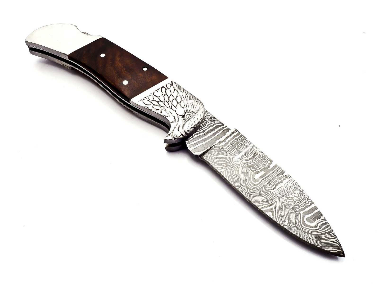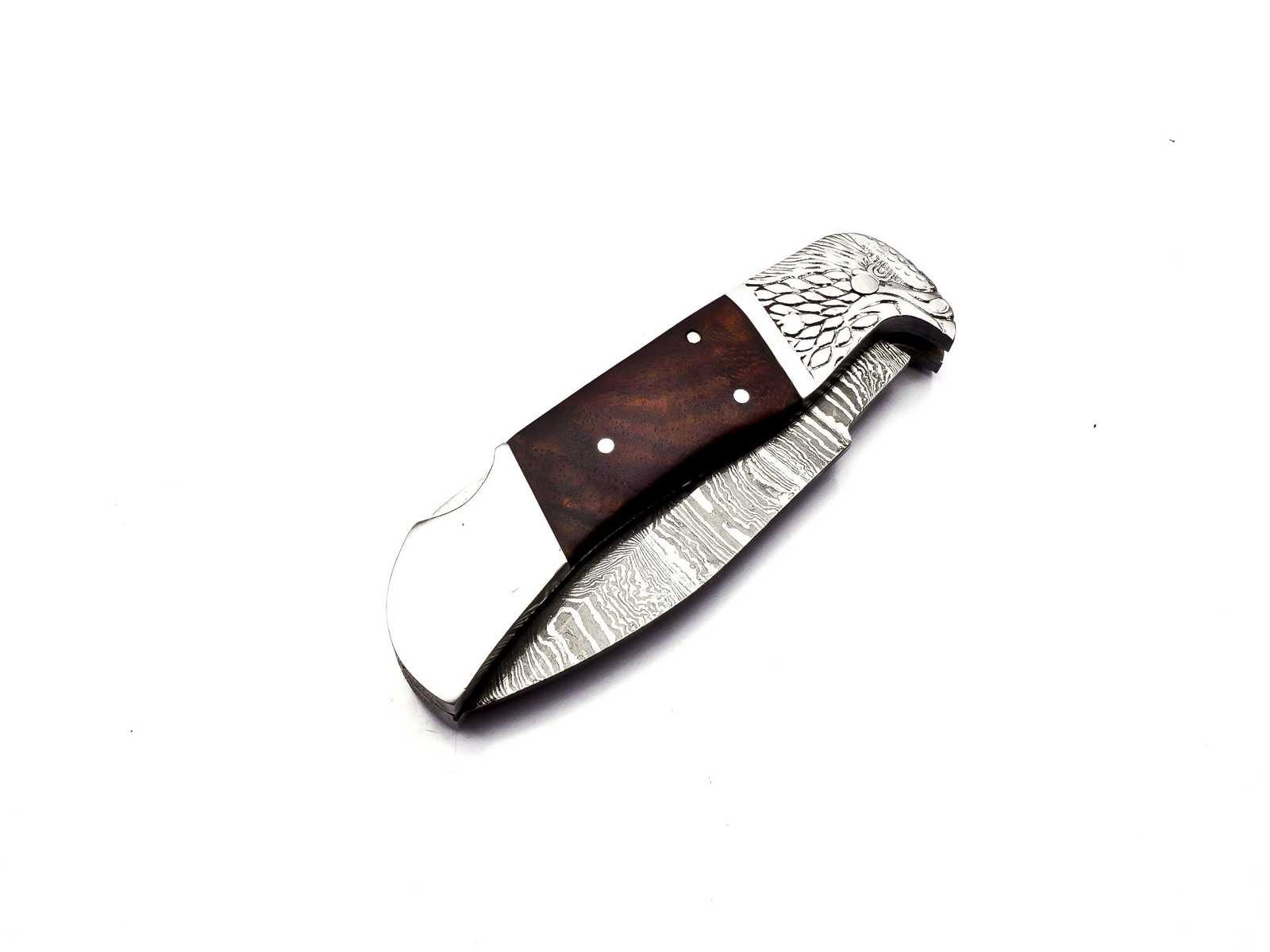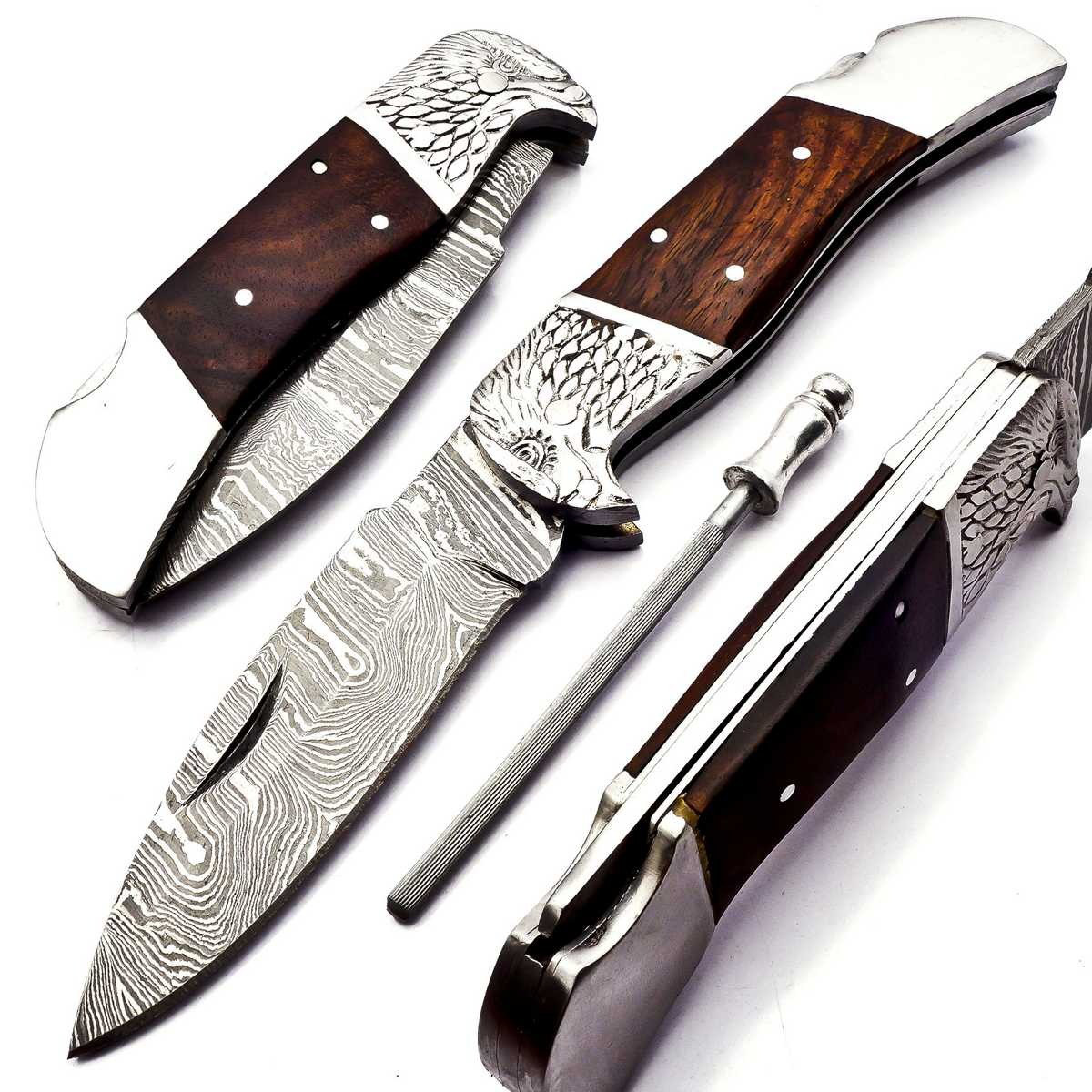 Hier erhalten Sie ansprechendes Hand geschmiedetes Damast Taschenmesser in reizvollem Damast Torsion Muster. Die ebenfalls Hand gefertigte Leder Scheide besteht aus hochwertigem Rind Leder.