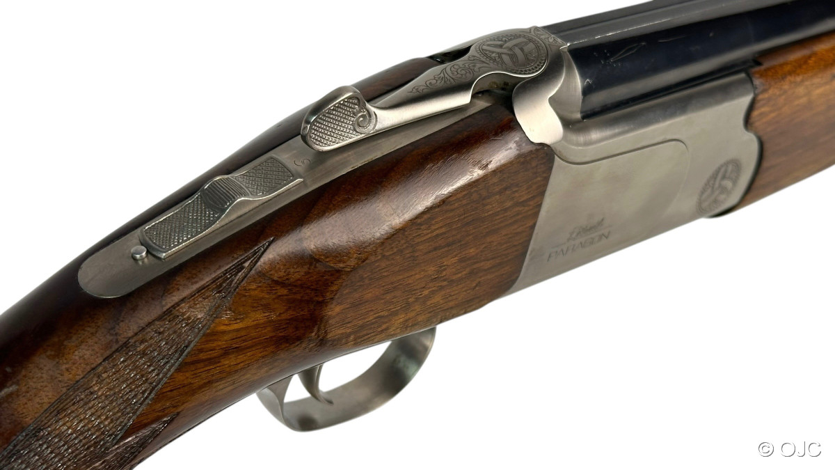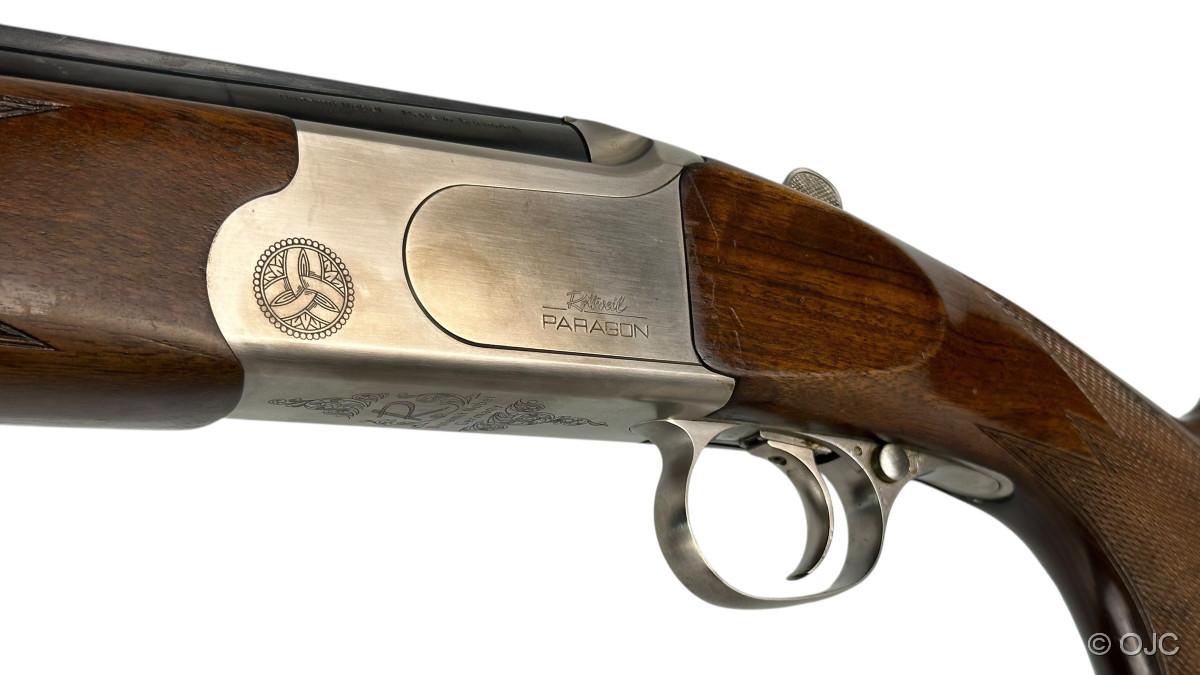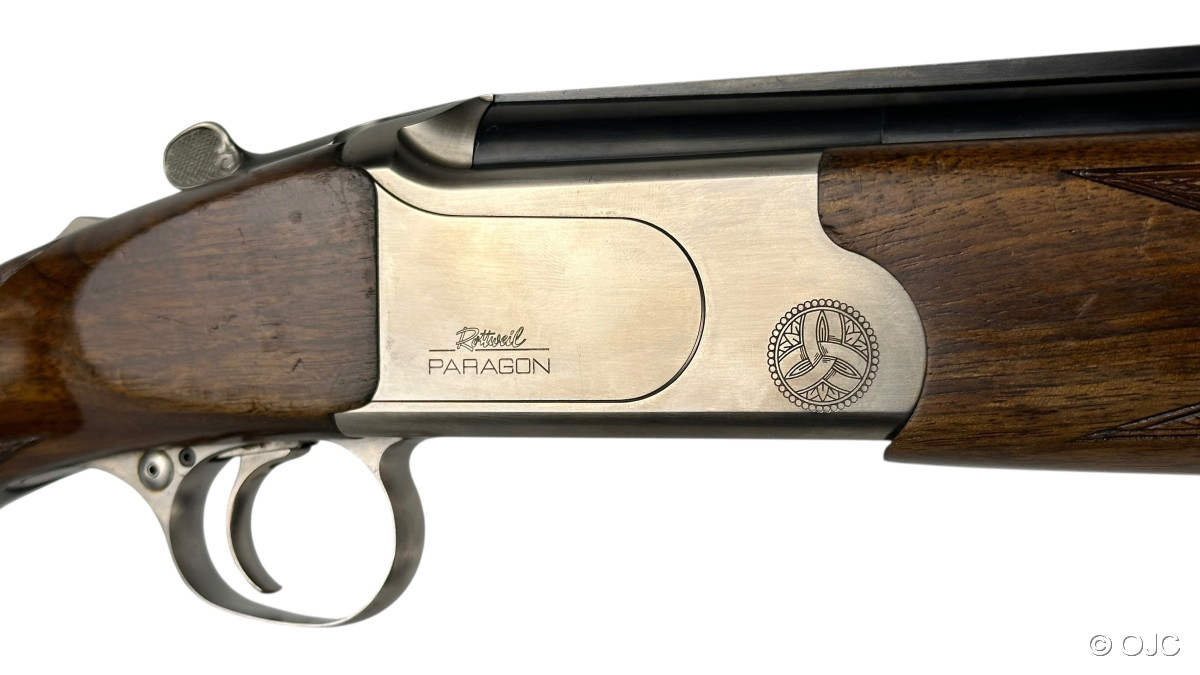 Die vorliegende Rottweil Paragon verfügt über einen Einabzug, eine mechanische Umschaltung sowie Ejektoren. Wie üblich findet sich die Sicherung auf dem Kolbenhals, der Wahlschalter für die Läufe findet sich als Knopf am Abzugsbügel. Inklusive Riemenbügel.