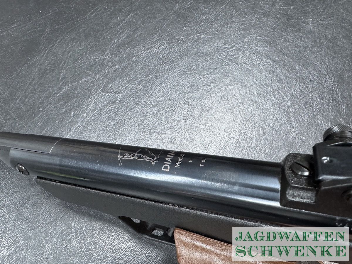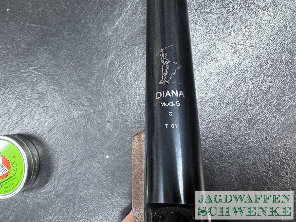 Die Luftpistole Mod. 5G verfügt über einen verstellbaren, matchähnlichen Druckpunktabzug und Kunststoff-Griffschalen mit Daumenauflage, welche auch für Linkshänder erhältlich waren . Die Produktion dieser eindrucksvollen Diana-Luftpistole wurde eingestellt.