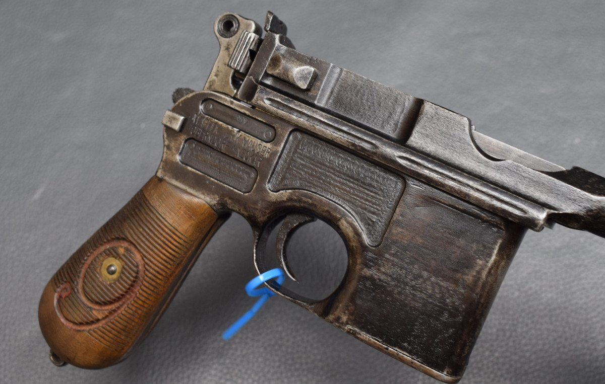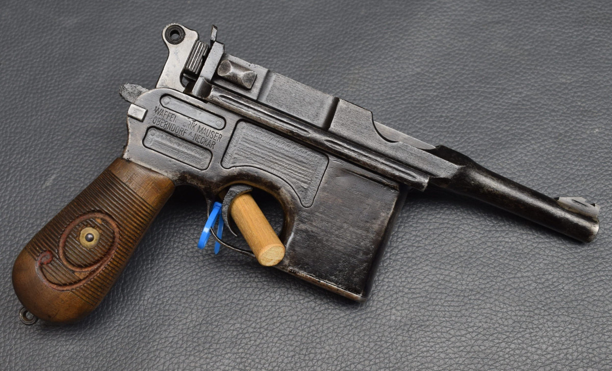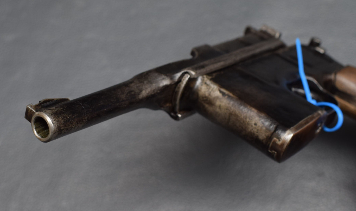 Mauser C96, Kaliber 9mmLuger ein Klassiker deutscher Waffentechnik 85 mm Lauf, starre Visierung, ohne Karn, Schiebesicherung an der seite, 10-Schuss Kastenmagazin, Nur an Händler, Sammler oder Ausland!