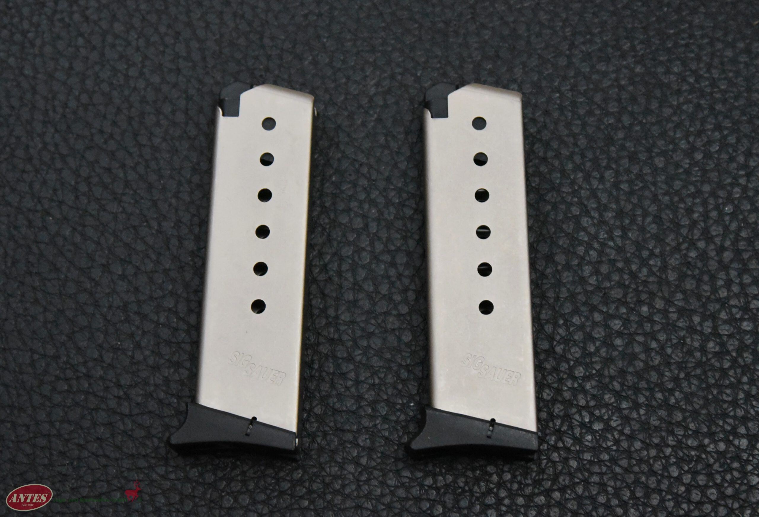Original Sig-Sauer Magazin Mod. P 239Kal. 7,65 mm , 8 Schuss und 9 mm Short, 7 SchussOriginal Sig-Sauer Magazin für Sig-Sauer Pistole Mod. P 239. Kaliber: 7,65 mm (Magazinkapazität: 8 Schuss). Passend auch für Kaliber: 9 mm Short (Magazinkapazität: 7 Schuss).