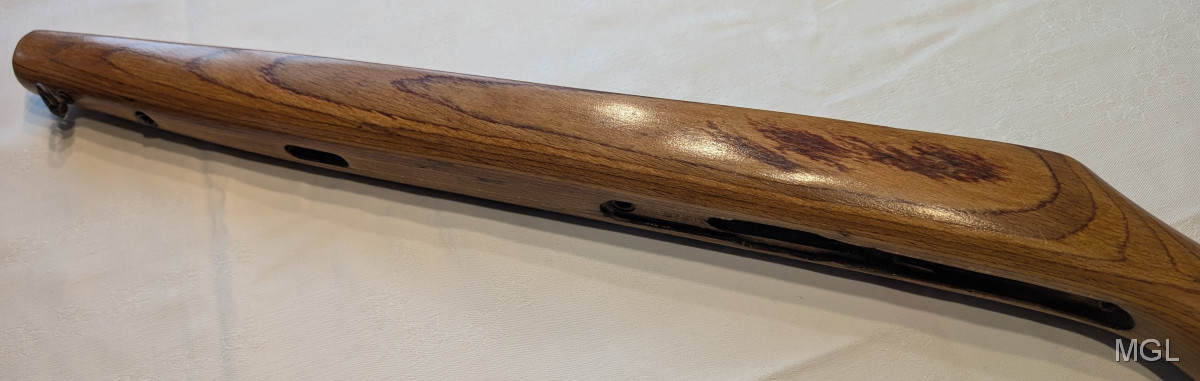 Hier der SCHAFT von einem HAENEL LUFTGEWEHR MOD. 49 bzw 49a, die dürften baugleich sein, von 06.59. Natürlich gebraucht aber nach meinem Augenschein nur leichte altersbedingte Spuren, keine Risse, aber Ösen für einen Gurt.