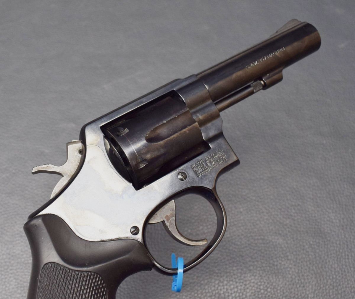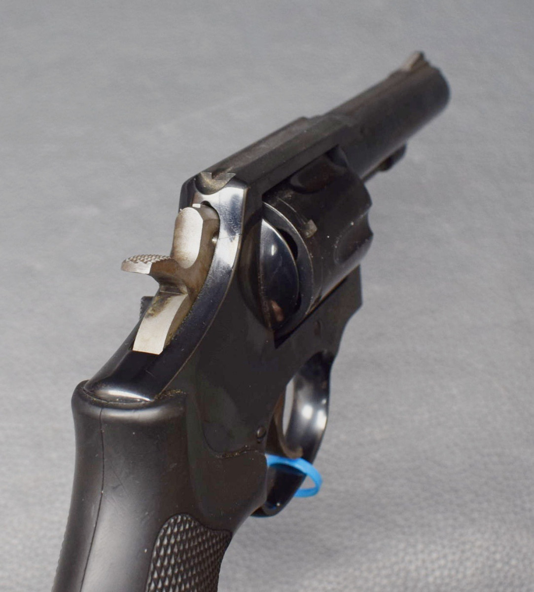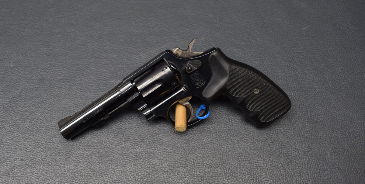 SA/DA Abzugssystem, K-Rahmen, 6-Schuss Trommel, Gummigriff mit Daumenauflage und Fingerrillen. Lauf und Trommelbohrungen sehr gut, Oberfläche 97% Gebrauchtwaffe, sehr gut