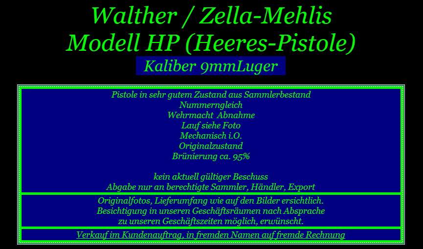 Bei der angebotenen Ware handelt es sich um eine gebrauchte Waffe, die einen historischen Wert als Sammlerstück hat und zudem als Antiquität zu bezeichnen ist.