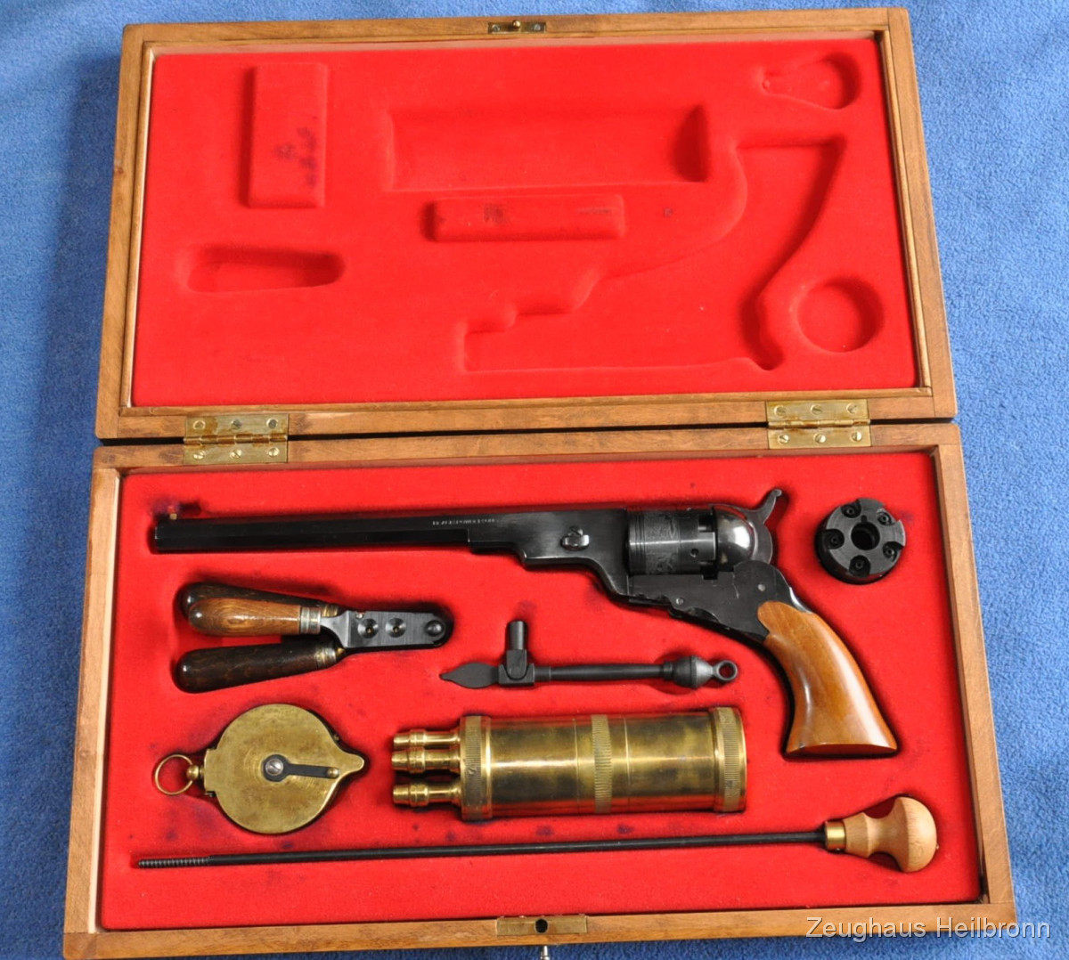 Waffe in einem neuwertigen Zustand, siehe Bilder, Lauf blank, volle Funktion. In Holzkasette mit Zubehör und 2. Trommel.