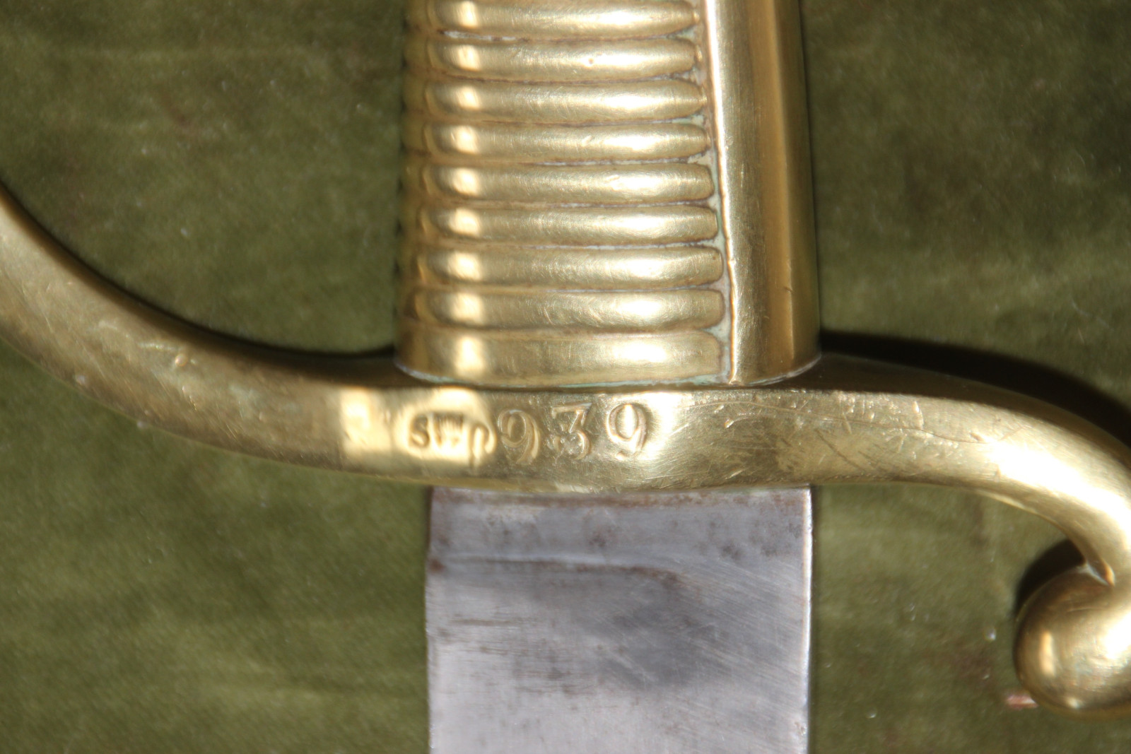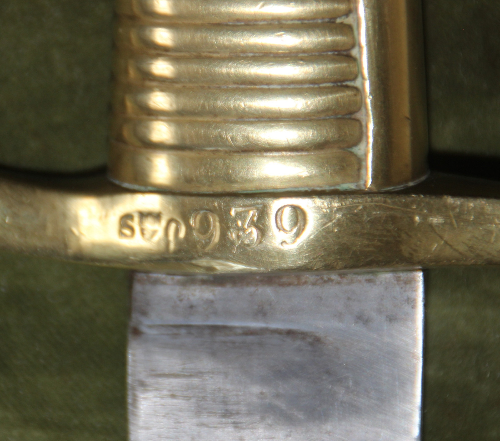 Schweizer Infanteriesäbel M 1842 / 52, nach dem Vorbild des französischen sabre d´infanterie AN XI (sabre briquet), ohne Scheide, Klinge recht schön, nur an der Spitze einige Rostnärbchen. Das Gefäß aus Messing schön, ohne nennenswerte Mängel. die Vernietung der Angel noch original, die Klinge sitzt ohne zu wackeln fest im Gefäß. Die Parierstange ist mit der Seriennummer 939, sowie dem von den Lettern "S" und "O" flankierten Wappenschild des Kantons Solothurn. Alle Angaben nach bestem Wissen und Gewissen. Dies ist ein Privatverkauf. Gemäß EU-Recht unter Ausschluss von Gewährleistung und jeglicher Sachmängelhaftung. Der Käufer ist selbst verantwortlich für die Einhaltung der gesetzlichen Vorschriften / des Waffenrechtes seines Landes. Fragen bitte rechtzeitig vor dem Auktionsende stellen. Ich beobachte meine Auktionen und mein Mail-Postfach nicht permanent. Daher bei kurz vor Auktionsende gestellten Fragen keine Garantie auf eine rechtzeitige Antwort. Verkauf nur gegen Vorkasse. Banküberweisung oder PayPal (Bei Zahlung über PayPal erhöht sich der Kaufpreis um die von PayPal einbehaltene Gebühr, bei Zahlung mit der Option Geld an Freunde senden entfallen diese zusätzlichen Kosten) Bei Selbstabholung ist Barzahlung möglich. Die Versandkostenpauschale deckt außer den reinen Portokosten auch einen Anteil an Verpackungs und Fahrtkosten zum nächstgelegenen Paketshop. Versandkosten sind nicht verhandelbar. Die Versandkosten sind Kosten für den Inlandsversand. Versandkosten ins Ausland gemäß den aktuellen Preislisten der beauftragten Paketdienste sind höher.